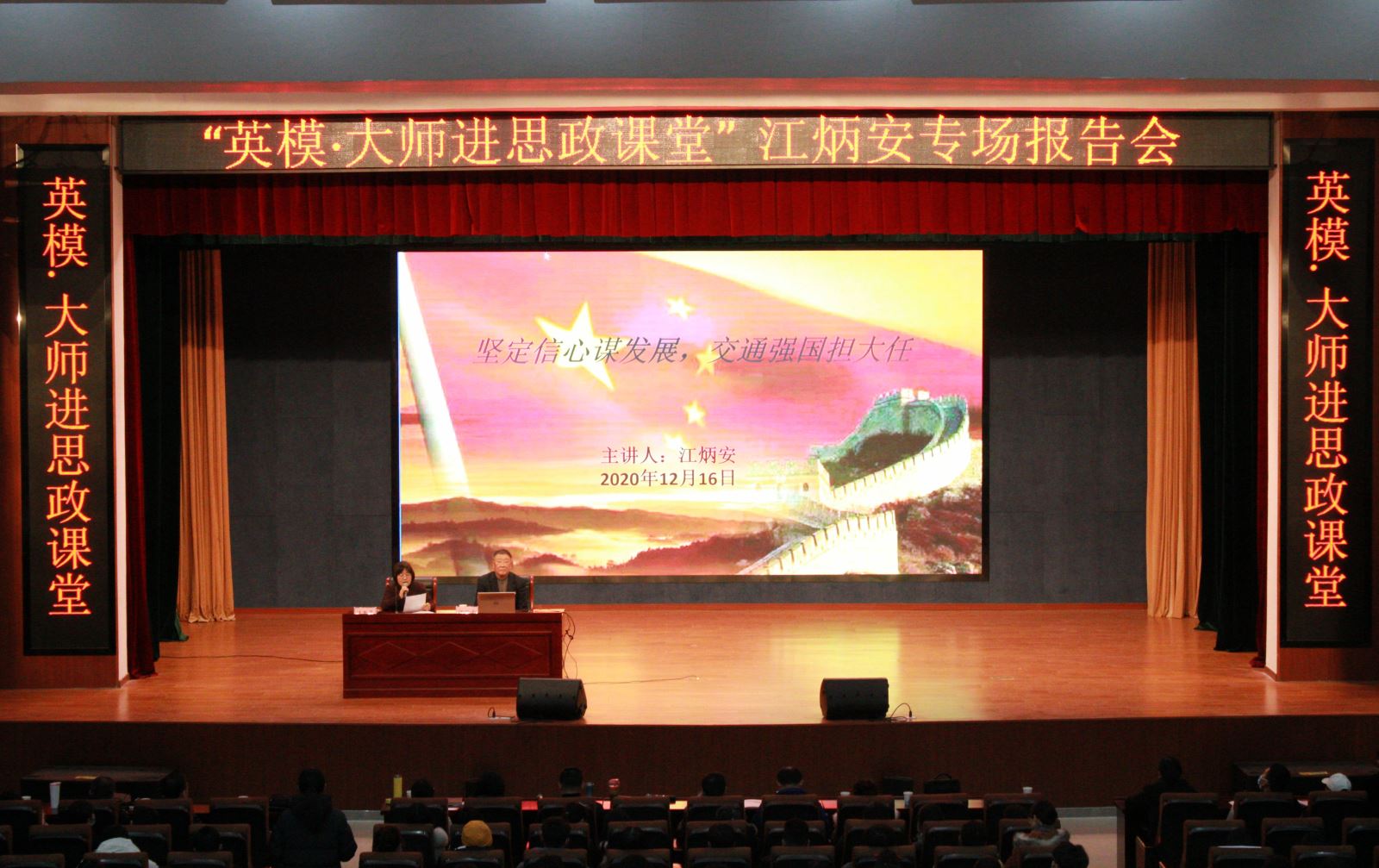 12月16日下午,由管理系党总支主办的“英模·大师进思政课堂”系列报告会在南区大礼堂举行,荣获“包河好人”、包河区道德模范等称号的江炳安老先生走进思政课堂,给大家带来一场以“坚定信心谋发展,交通强国担大任”为主题的专场报告会。