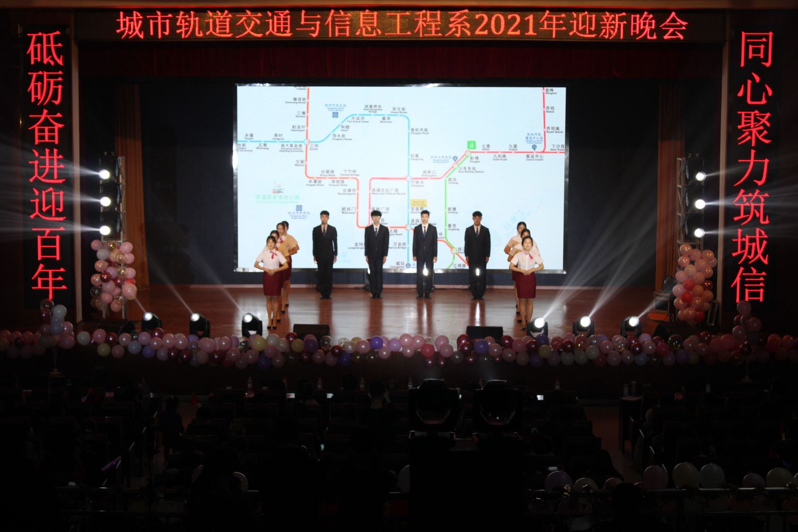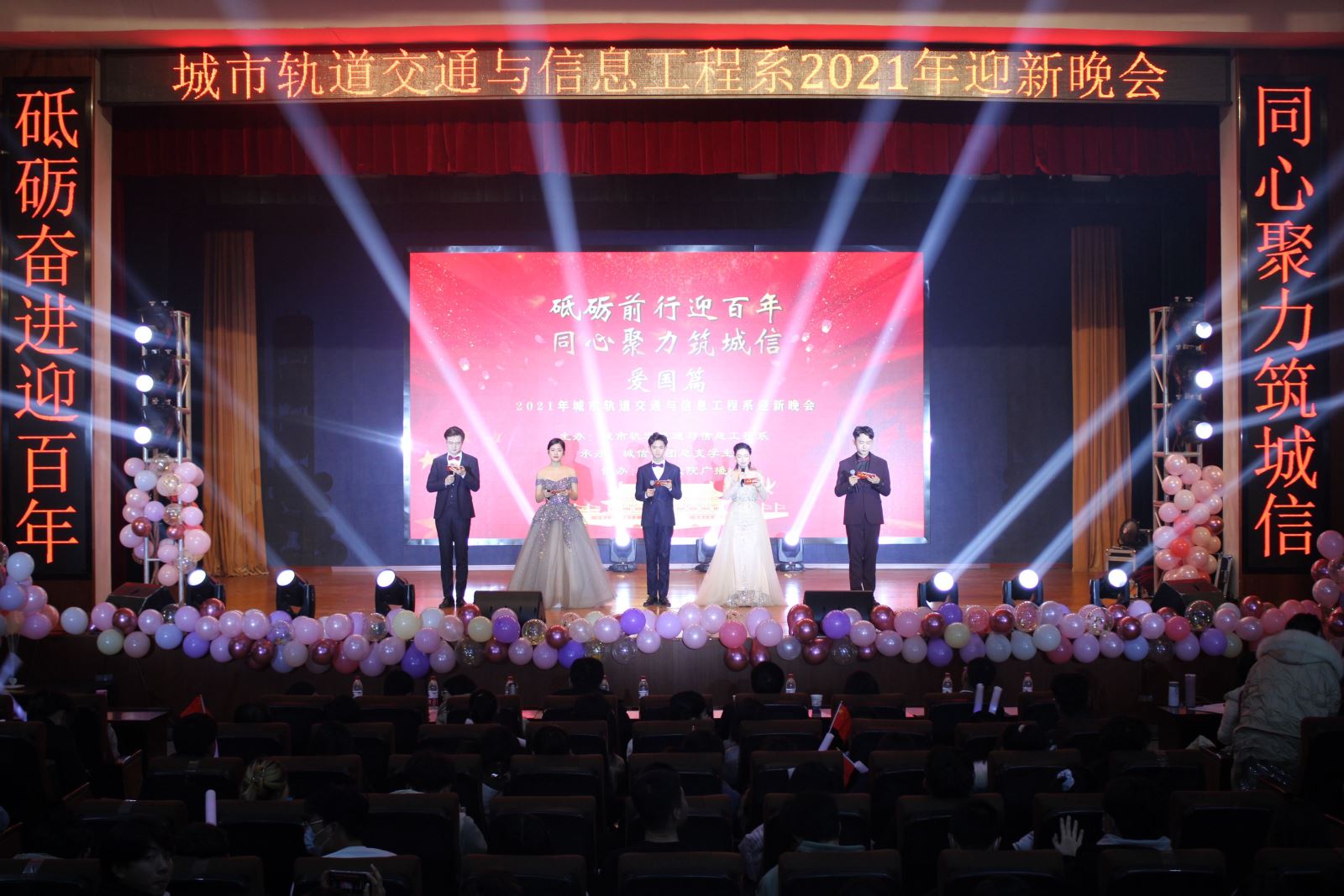 砥砺前行迎百年,同心聚力筑城信。12月23日晚,由城市轨道交通与信息工程系主办,系团总支学生会承办的2021年迎新晚会在南区大礼堂举办。副院长王丰胜出席,并为在安徽省职业技能大赛等比赛中获奖的学生颁奖。城信系党总支书记汪倩,系主任李锐,学生处副主任、团总支书记肖虹,系副主任娄智,系党总支副书记承友明与同学们共同观看了演出。