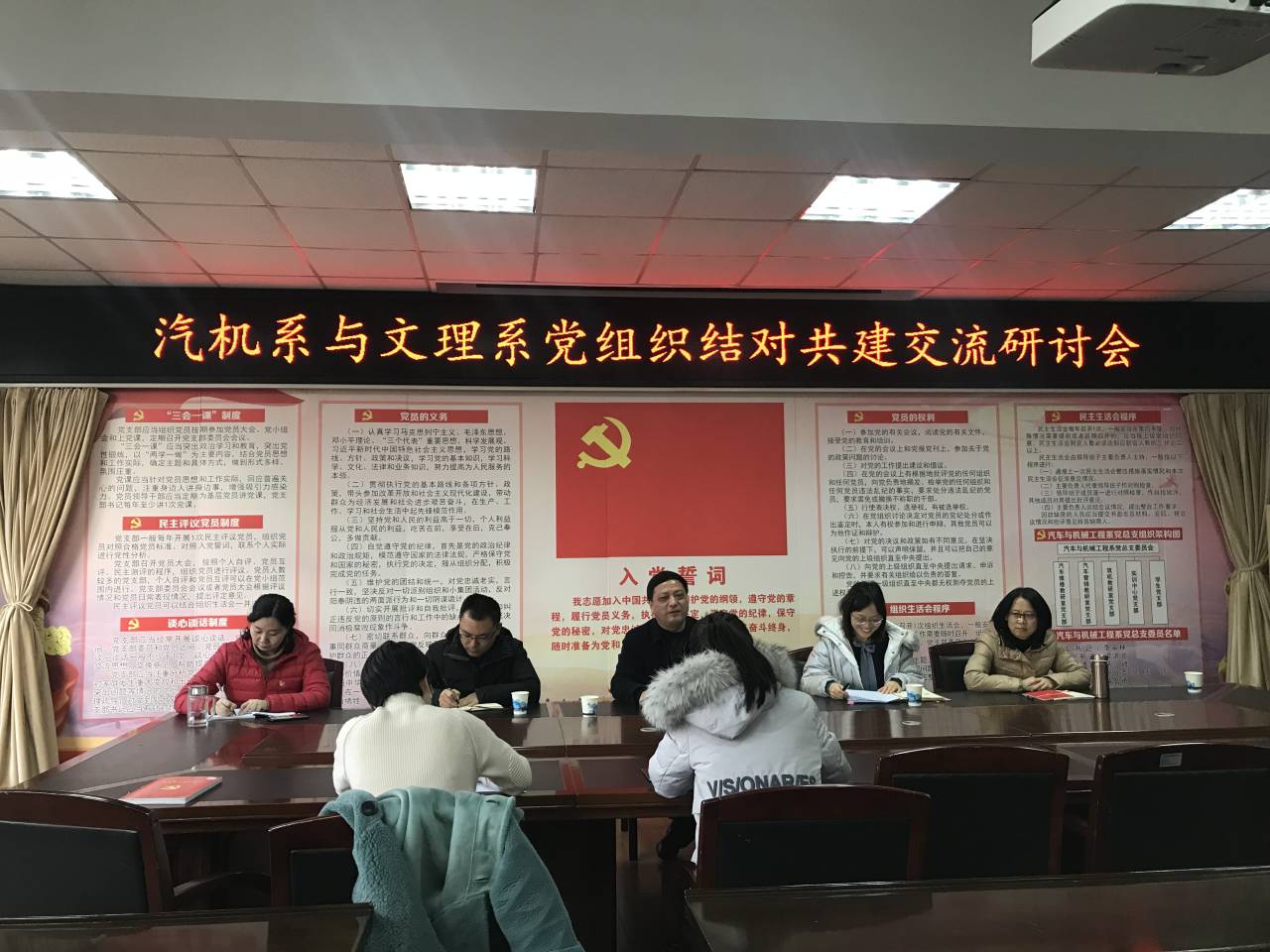 为进一步落实学院党建工作部署,持续做好巡视整改工作,加强党支部党建工作交流,共同提高党建工作水平,12月25日,文理科学系与汽车与机械工程系召开党组织结对共建交流研讨会。汽车与机械工程系党总支书记李家林、文理科学系党总支副书记、副主任王珏、文理系学生党支部书记赵茹、汽机系实训中心党支部书记黄智勇、汽机系学生党支部书记赵婧等出席会议,会议由李家林主持。