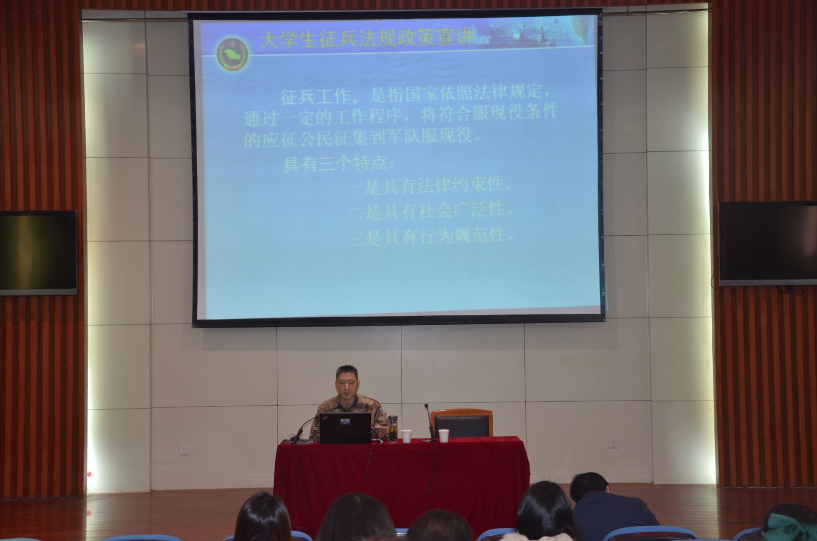 朱宏刚从入伍前、服役时和退役后三个方面对大学生应征入伍政策、征兵基本条件、报名流程、发展空间、退役优待条件等相关政策进行了详细解读,他分享了自己的从军感受和收获,强调当兵入伍既是响应国家号召,履行保家卫国义务的需要,也是自我锤炼的良机,鼓励同学们,特别是2021届毕业生要把握时代机遇,携笔从戎,踊跃应征入伍,积极投身于火热的军营,到部队中成长和锻炼,把个人理想抱负融入祖国国防事业,为强军梦、中国梦贡献青春力量。