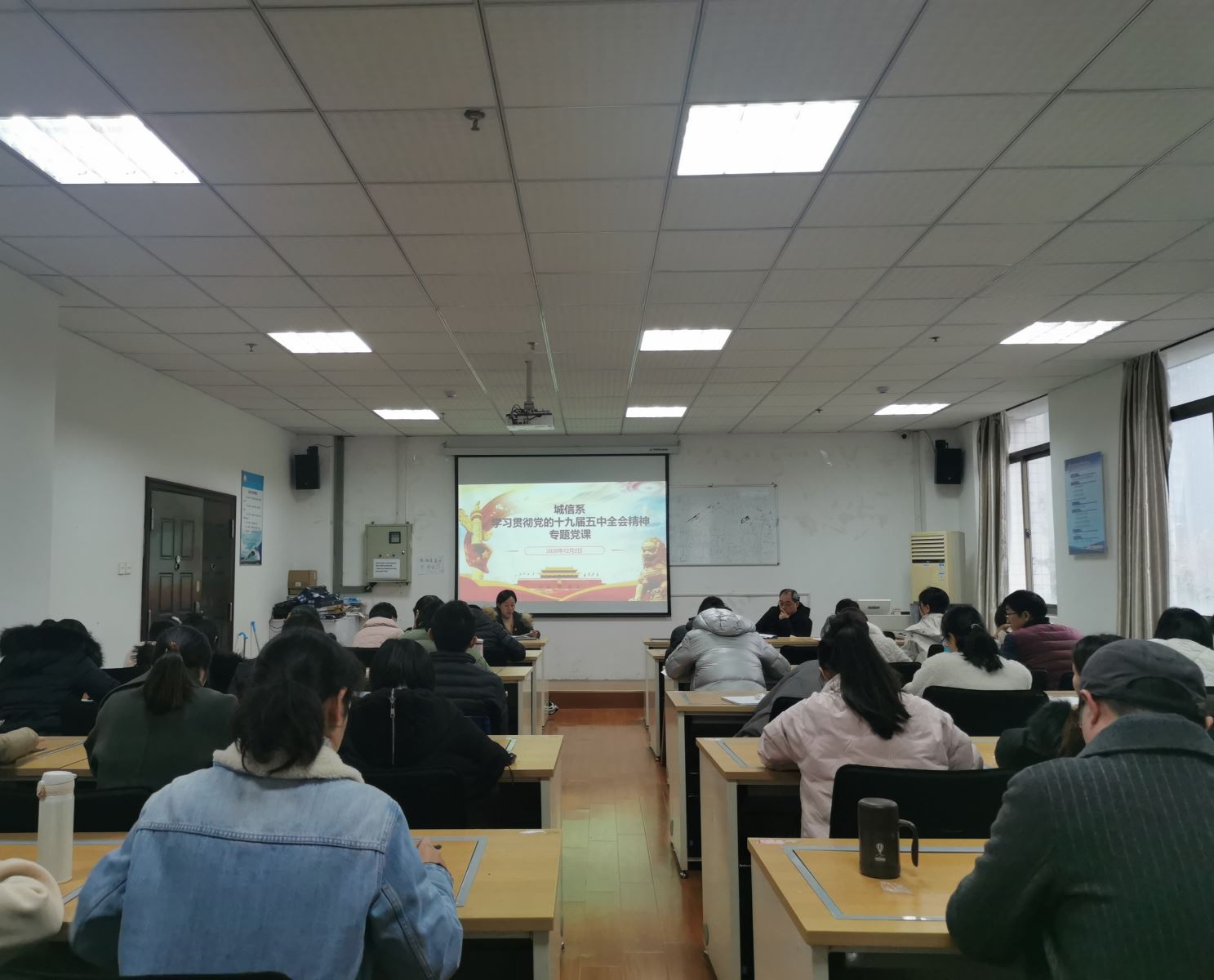 为深入学习贯彻习近平新时代中国特色社会主义思想、增强“四个意识”、坚定“四个自信”、做到“两个维护”,深入学习贯彻党的十九届五中全会精神,切实把思想和行动统一到以习近平同志为核心的党中央决策部署上来,12月2日下午,城信系党总支开展了“党课开讲啦——学习贯彻党的十九届五中全会精神”系列党课报告会。系全体党员参加了报告会。