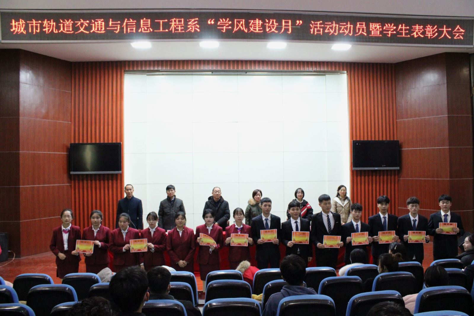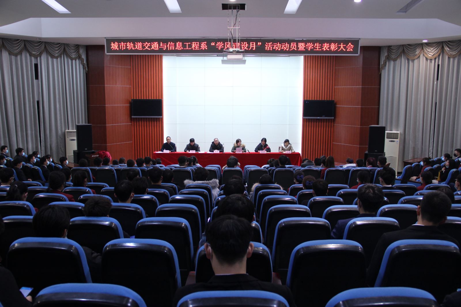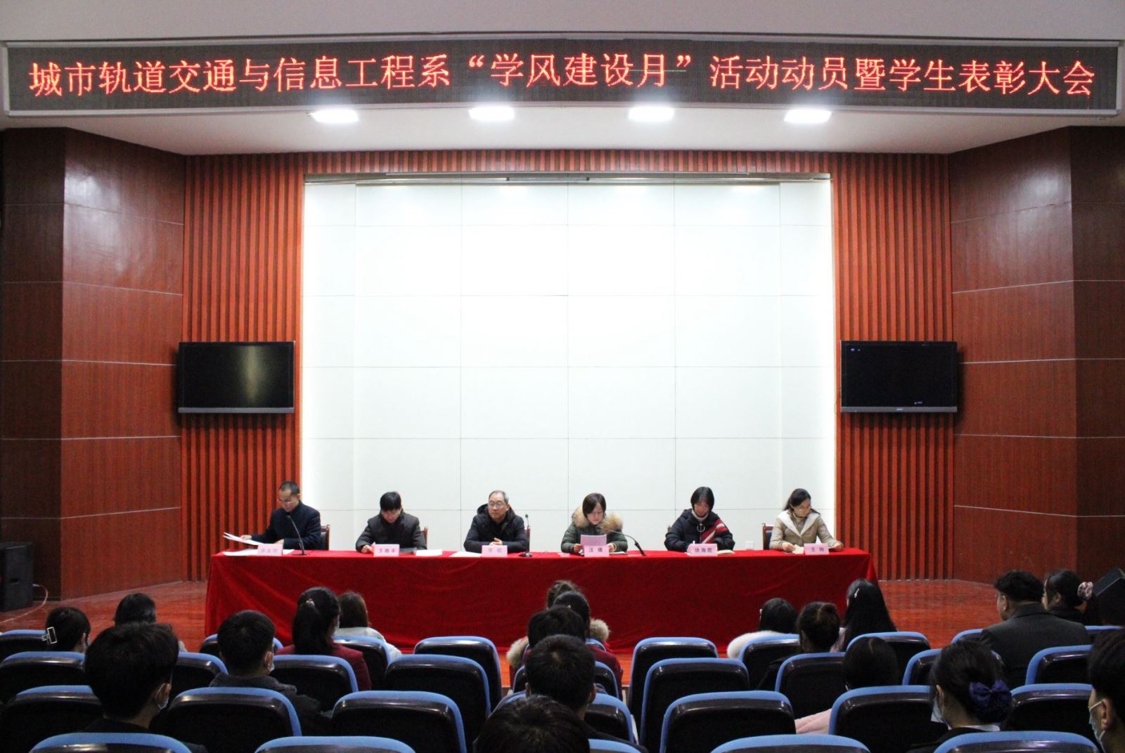 城市轨道交通与信息工程系历来高度重视学风建设,始终将学风建设作为全系各项工作重中之重,坚持“党建引领学风、党建促进学风、党建保障学风”的工作思路,按照“优良学风保障人才培养质量”的办学理念,结合全系教育教学、学生管理等各项工作实际,不断创新学风建设长效机制。12月3日下午,城市轨道交通与信息工程系在八角楼多功能报告厅召开“学风建设月”活动动员暨学生表彰大会,系领导班子、学管人员、教学管理人员、2019级、2020级辅导员、部分授课教师及学生代表参加了大会。大会由系党总支副书记承友明主持。