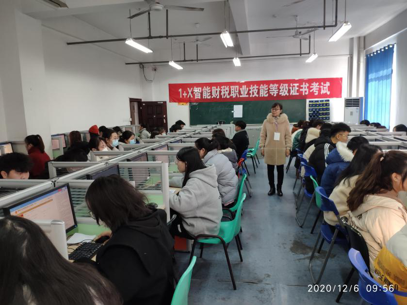 为贯彻落实《国家职业教育改革实施方案》中1+X证书制度试点工作的要求,加快推进书证融通、课证融合教学改革实践,根据教育部1+X证书试点工作安排,12月6日,管理工程系举行1+X智能财税职业技能等级证书考试。会计专业160名学生参加了此次考试。系主任刘安婕现场督考,中联公司安徽地区考务负责人给予全程支持。