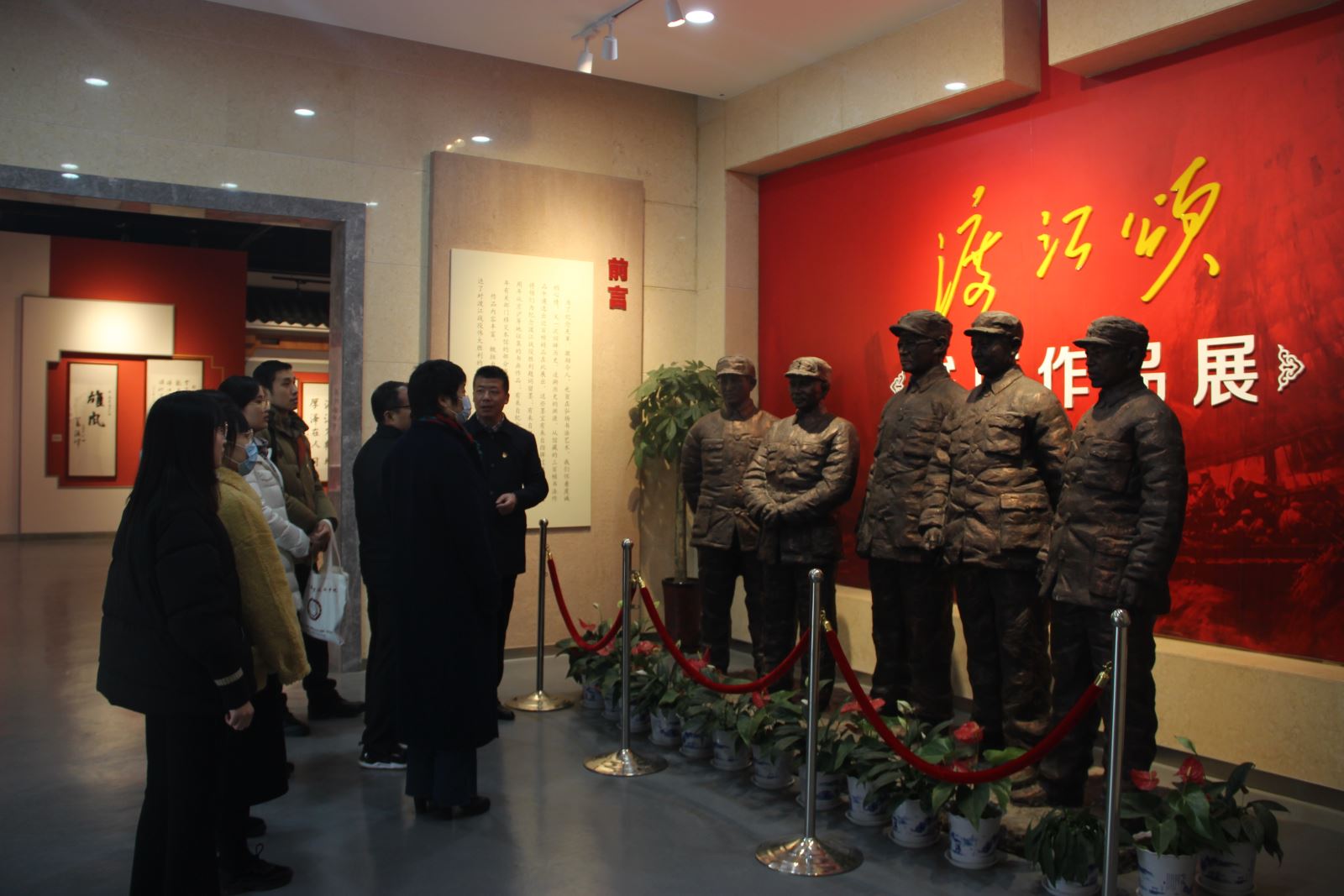 党员们依次参观了参谋处旧址、《渡江颂》书画展厅、总前委旧址、华东局旧址。随步到处一派青砖黛瓦、斑墙砾石,历史气息扑面而来。这里收藏并陈列着渡江战役及解放战争期间的各种枪支、枪套、斧头、报刊、肩章、被褥和各种生活用品,以及曾经在这里参加渡江战役的同志的回忆录和访谈录,在一件件浸透着历史记忆的文物面前,我们的眼前仿佛又看见“枪林弹雨、万舟齐发”的磅礴气势,耳畔好像又听到“炮火轰鸣、军号嘹亮”的慷慨激昂。“钟山风雨起苍黄、百万雄师过大江,虎踞龙盘今胜昔,天翻地覆慨而慷”伟人的声音透过时空传来……