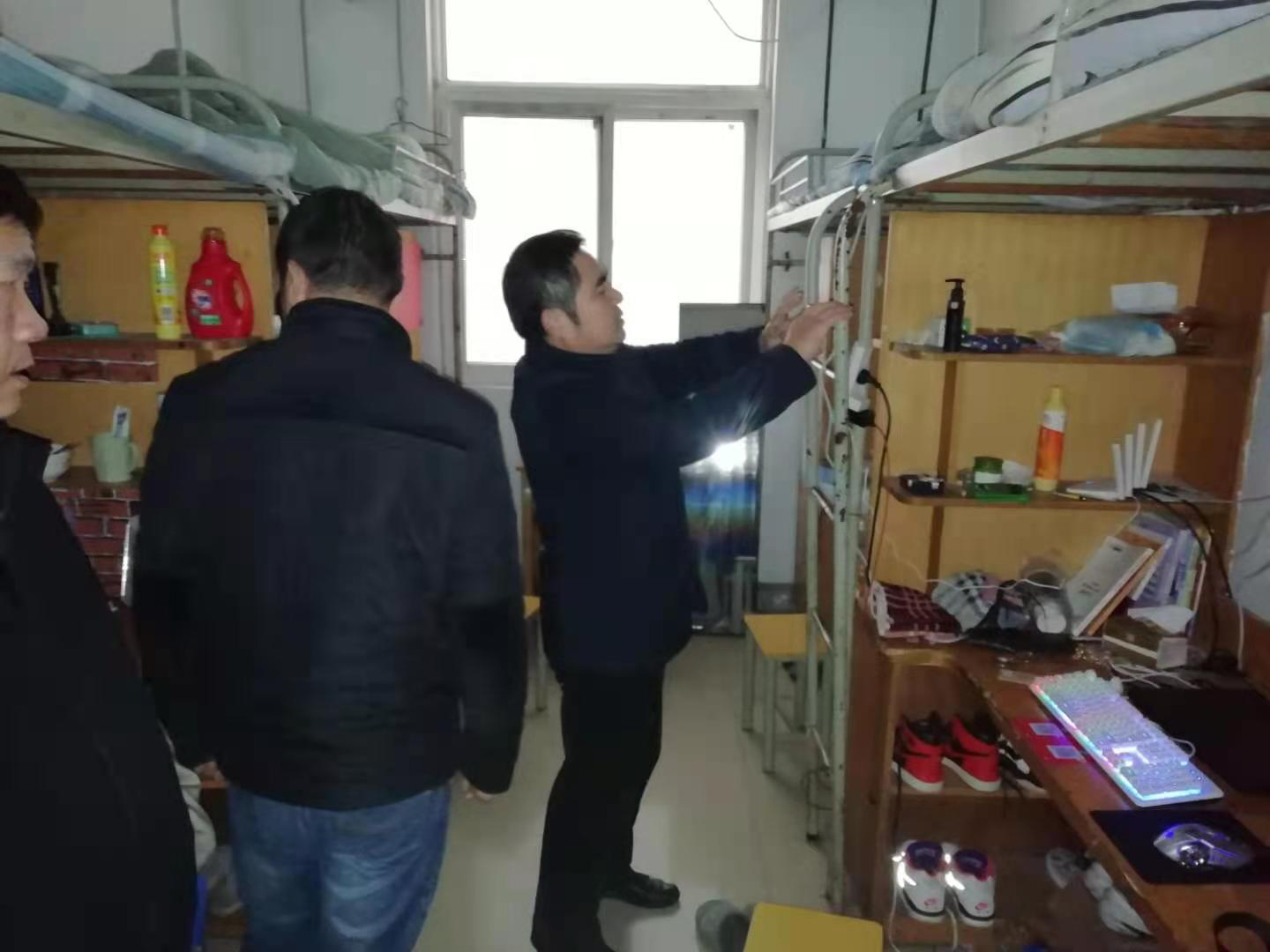 对南北区学生食堂的用火用电、学生宿舍的用火用电,重点进行了检查。通过检查发现食堂和学生宿舍,均有电线私拉乱接现象,检查组一行,当即提出了整改措施,能当场整改的当场整改,不能当场整改的,对相关责任人,进行现场教育、现场督促,限期整改到位。