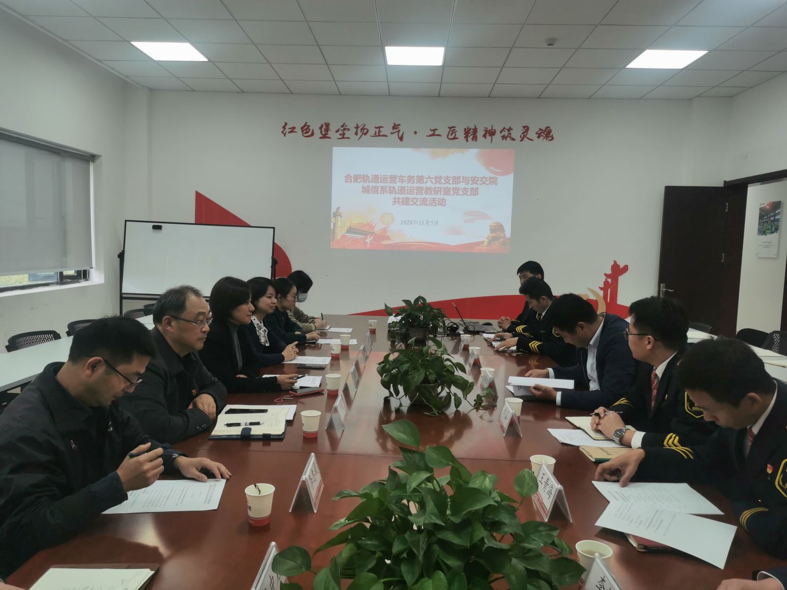 为进一步深化校企合作,共同探索新时代下党建共建的新思路、新模式,11月5日下午,城信系党总支书记汪倩、系主任李锐、轨道运营教研室党支部书记李志成、支委杨婷婷及部分党员老师前往合肥轨道交通集团有限公司车务党总支第六党支部开展校企党组织共建活动。合肥轨道交通集团有限公司运营分公司车务处副处长高汉祥、乘务三中心主任韩露、车务党总支第六党支部书记钱亚楠等同志参加了本次活动。