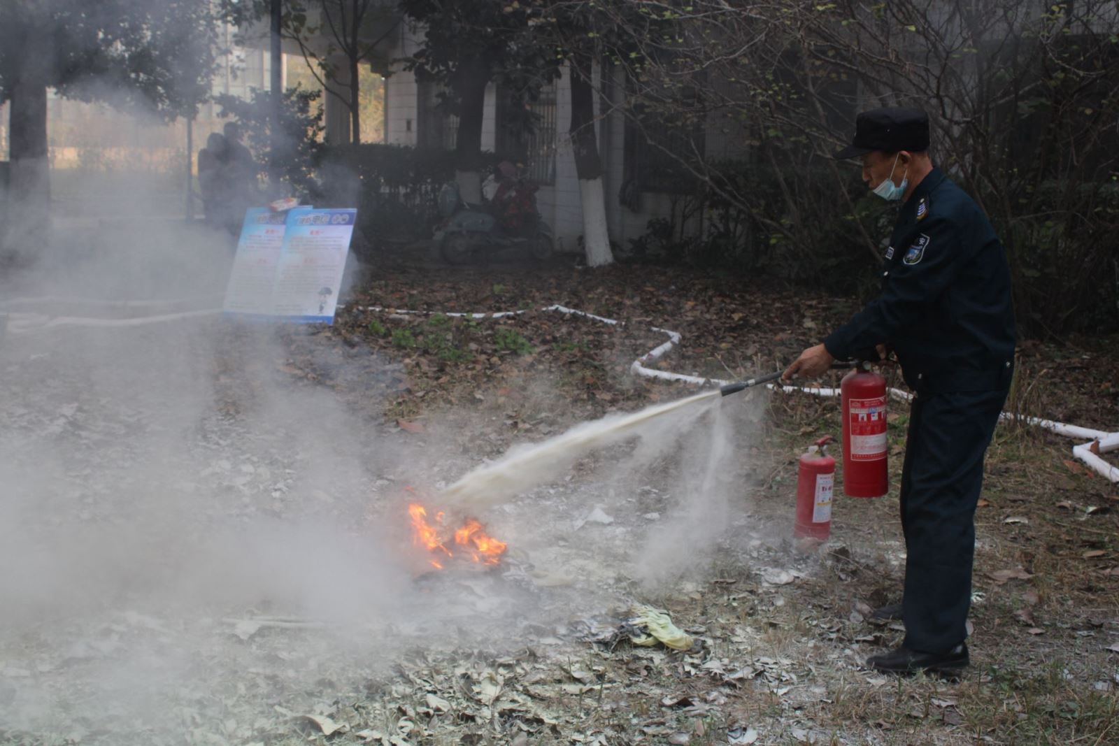 为加强消防安全防护,提高火灾应急处置能力,10月10日,保卫处联合图书馆举行了消防器材使用演练。