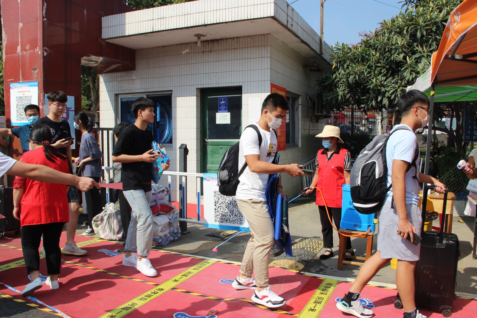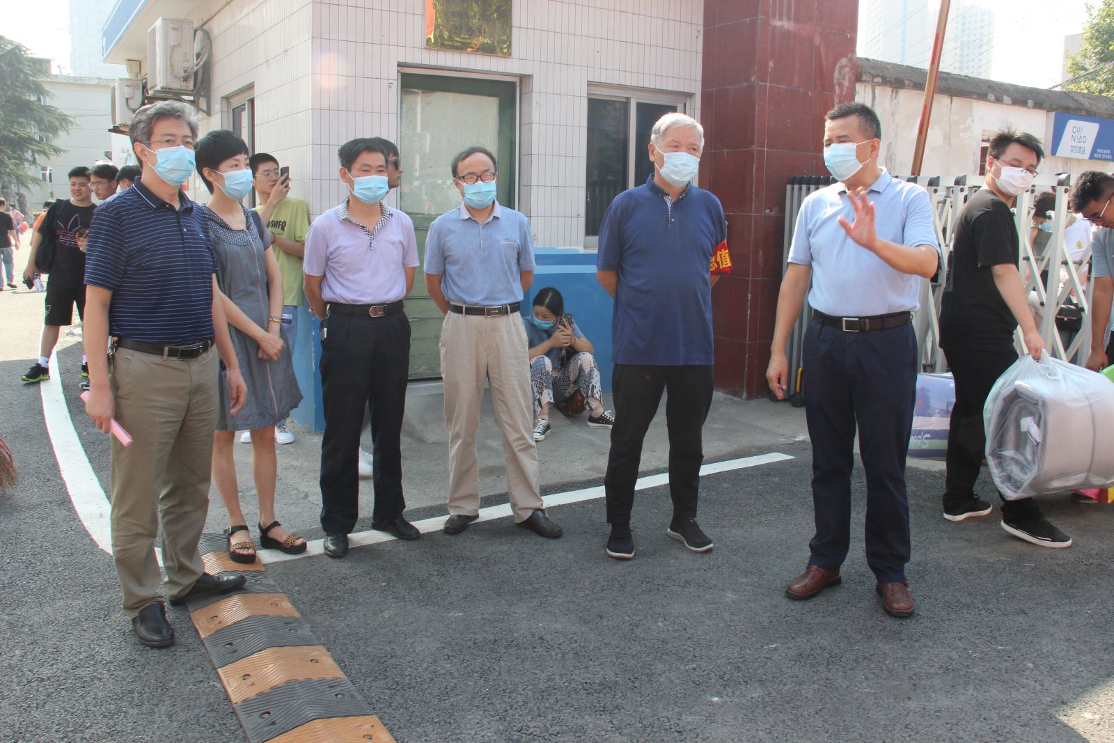 根据学院今年秋季开学工作安排,9月6日基础系2018级、2019级学生返校,院党委书记孙顺利、院长张国栋、纪委书记陈明、党委委员、组织人事处处长杨先奇来到南区现场检查指导,系党总支书记邵登泰、系副主任刘中平及辅导员老师在门口迎接返校学生,做好服务。