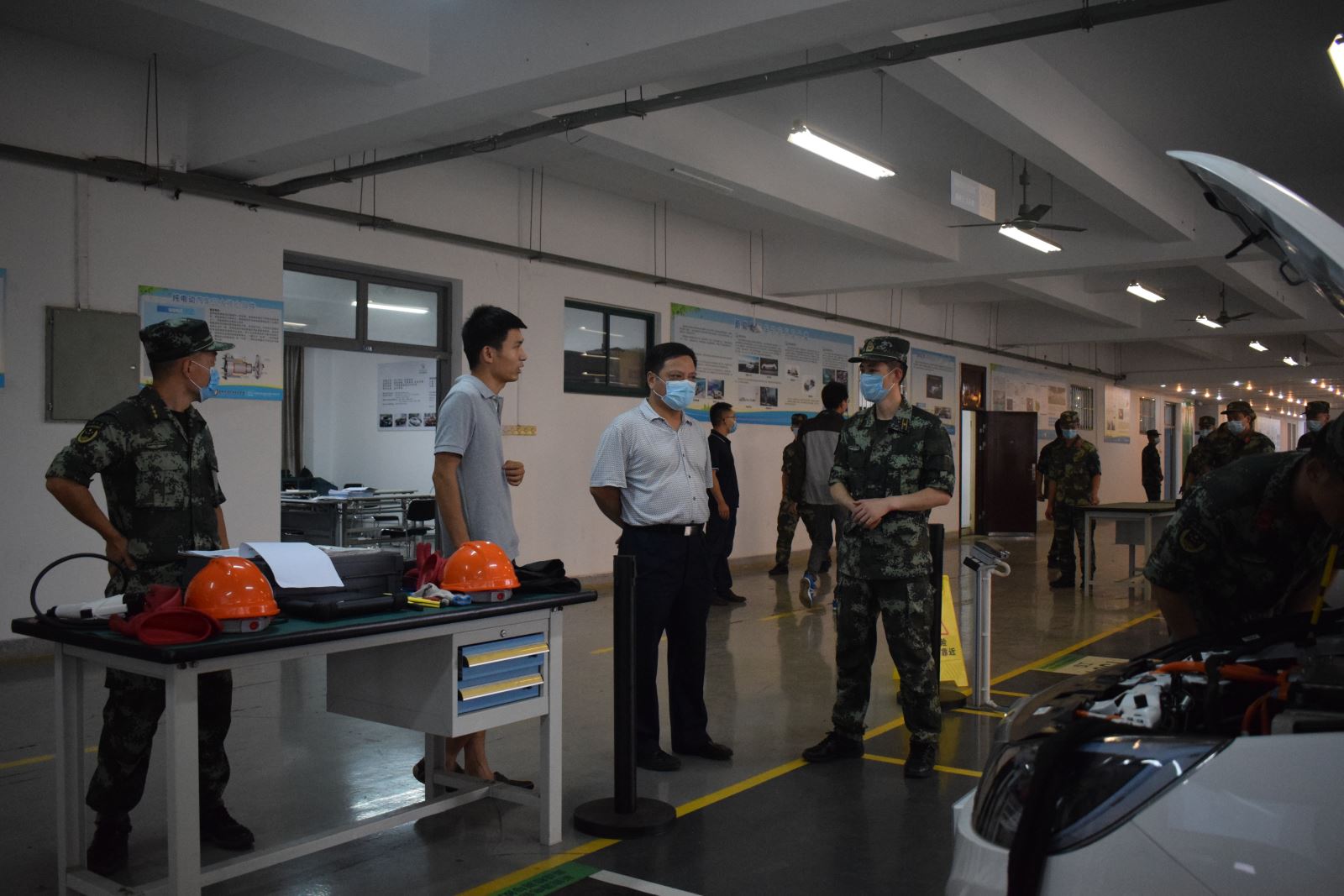来访的武警官兵是来自全省各地市武警部队汽车维修的中坚力量,这些学员有序地参观了汽车与机械实训中心的三个校企合作教学中心、工程机械实训室、新能源汽车实训室等。参观过程中,来访官兵对米兰实训中心总体建设、教学设备、实训工具、实训车辆等给予了高度肯定,期间不断同米兰师生交流,了解相关设备的功能与使用方法。
