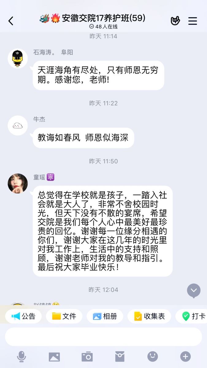 毕业生离校期间,各班级辅导员积极配合,利用新媒体平台,通过网络召开毕业班会,广泛进行征兵宣传、安全教育、爱校荣校教育、感恩教育、理想信念教育。各辅导员还及时深入宿舍,深切关怀了学生的就业、升学等情况,做好各项防控和安全宣传,为学生健康安全筑起了安全堡垒。17养护班辅导员王佳宾带领同学们集思广益,充分利用网络技术,为毕业生们推出了富有创意的线上毕业班会、云聚会等。辅导员们纷纷给毕业生送出寄语,17建筑班辅导员宁日说,“大学毕业是人生中的一个小小的句号,当句号落下时,你们就从一个孩子变成了一个在社会中乘风破浪的舵手,将来的生活尽管会有狂风暴雨、惊涛骇浪,但相信各位凭着自己的良好的品格、学习的毅力、踏实的工作态度,通过拼搏进取一定能够到达属于自己的理想彼岸!”15路桥(3+2)辅导员刘健说,“时光在不经意间带走了曾经的美好,一千八百二十五天的陪伴,有欢笑,有泪水。从豆蔻年华到意气风华,希望你们笑看人生百态,精品酸甜苦辣。五年时间,谢谢你们一路陪同,也谢谢你们的理解与照顾,希望以后的路你们一帆风顺!”17路桥1班和17路桥3班辅导员赵婧说,“同学们,今天你们走出校门,首先迎来‘三变’——生活模式的变化、人际交往的变化、工作方式的变化,明天你们将带上师长的嘱托和希冀踏入社会,希望同学们要有‘三心’——平常心、责任心、宽容心。”