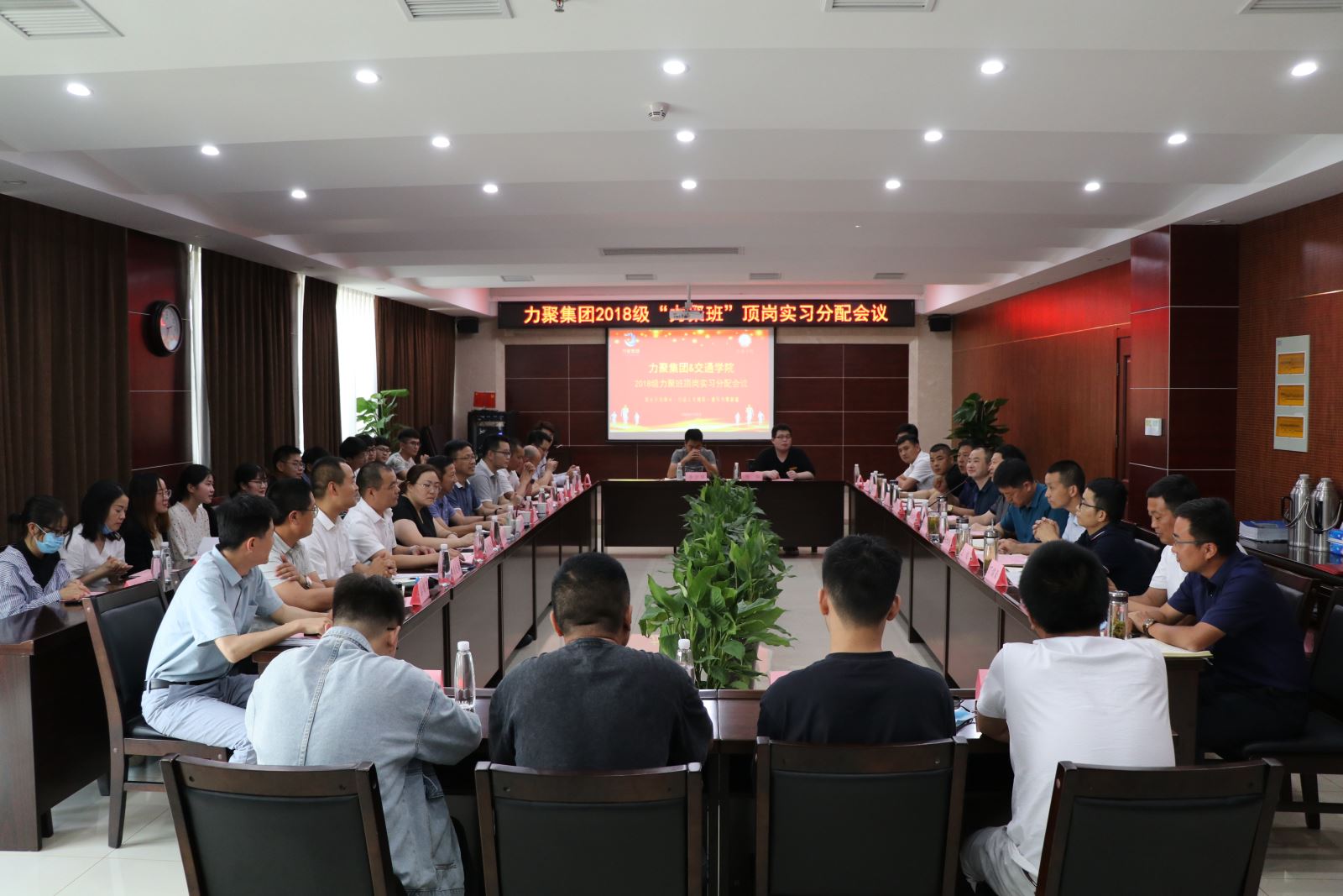 为实现现代学徒制班培育理念,体现现代学徒制校企合作实践教学模式,发扬传、帮、带传统教学模式,5月26日下午,土木系与安徽力聚集团共建的2018级现代学徒制“力聚班”首届顶岗实习分配会议暨拜师仪式活动在力聚集团大楼会议室开展。土木系主任王常才、副主任王守胜及“力聚班”师生代表出席会议。