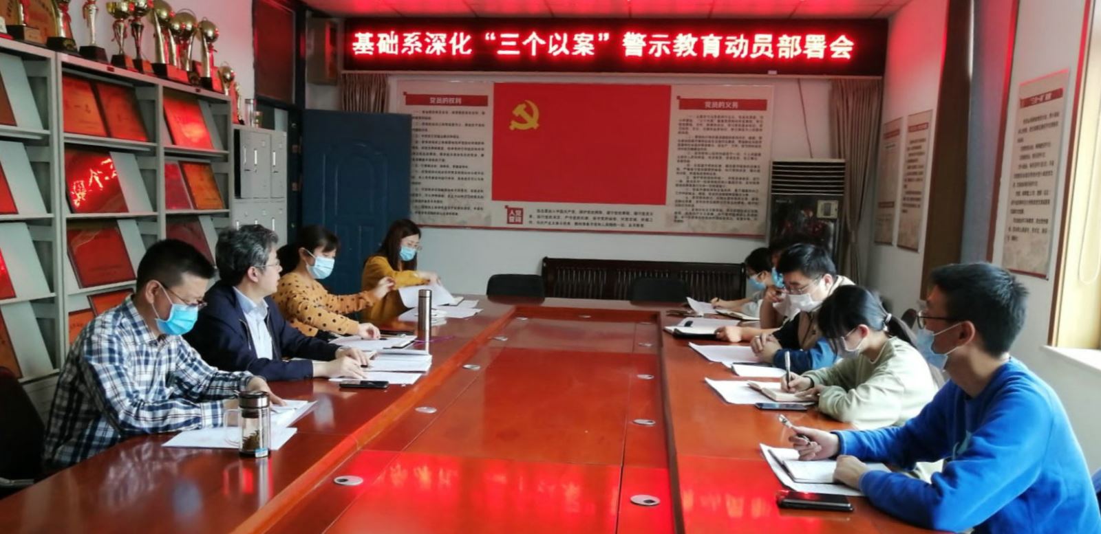 4月23日下午,基础系召开“三个以案”警示教育专题学习会,系党总支书记邵登泰主持会议,全系党员参会。