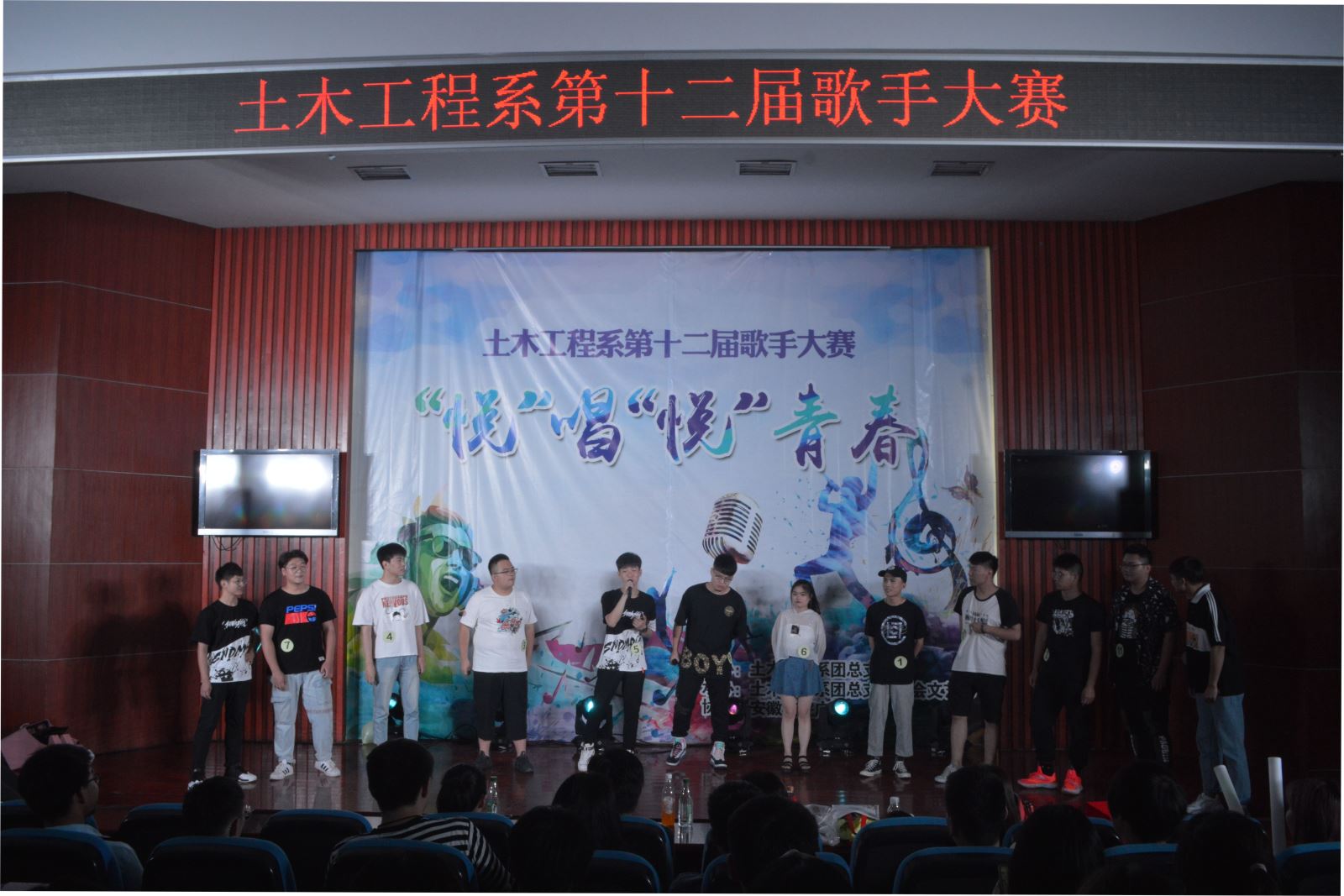 为繁荣校园文化生活,活跃校园文化氛围,6月11日晚,土木工程系第十二届歌手大赛在八角楼举行。安徽广播电视台综艺频道导演刘璐,安徽省音乐家协会会员李丽娟,安徽艺术职业学院艺术中心主任副教授王琰等担任大赛评委。经过层层选拔,12位选手走上决赛舞台。