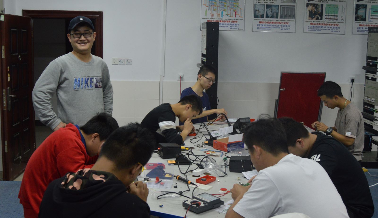 杨振宇除了是有着丰富一线教学经验的专业课教师、有着诸多学生工作履历的辅导员,他还任机电教研室党支部书记、计算机实训室中心主任,兼任学院计算机协会、电子协会的指导老师。去年电子协会成立之初,需要一些资金购置设备开展活动,杨振宇自掏腰包采购了机器人设备、单片机设备、电烙铁、嵌入式开发板等器件。他非常关心社会福利事业,通过电子产品义卖等方式,自筹了1200元购置了学习用品,用于捐赠合肥市春雷自闭症儿童学校的孩子们。城信系实训中心的实验员张新意说,“杨老师经常为城信系实验室建设出谋划策,在系里实验室建设过程中,好多设备位置有变动,他都是亲自指挥,经常加班到很晚才回家。”“杨老师经常带领我们年轻教师做项目、编写教材,对我们新入职的年轻老师成长非常有帮助。”同事王怡说。