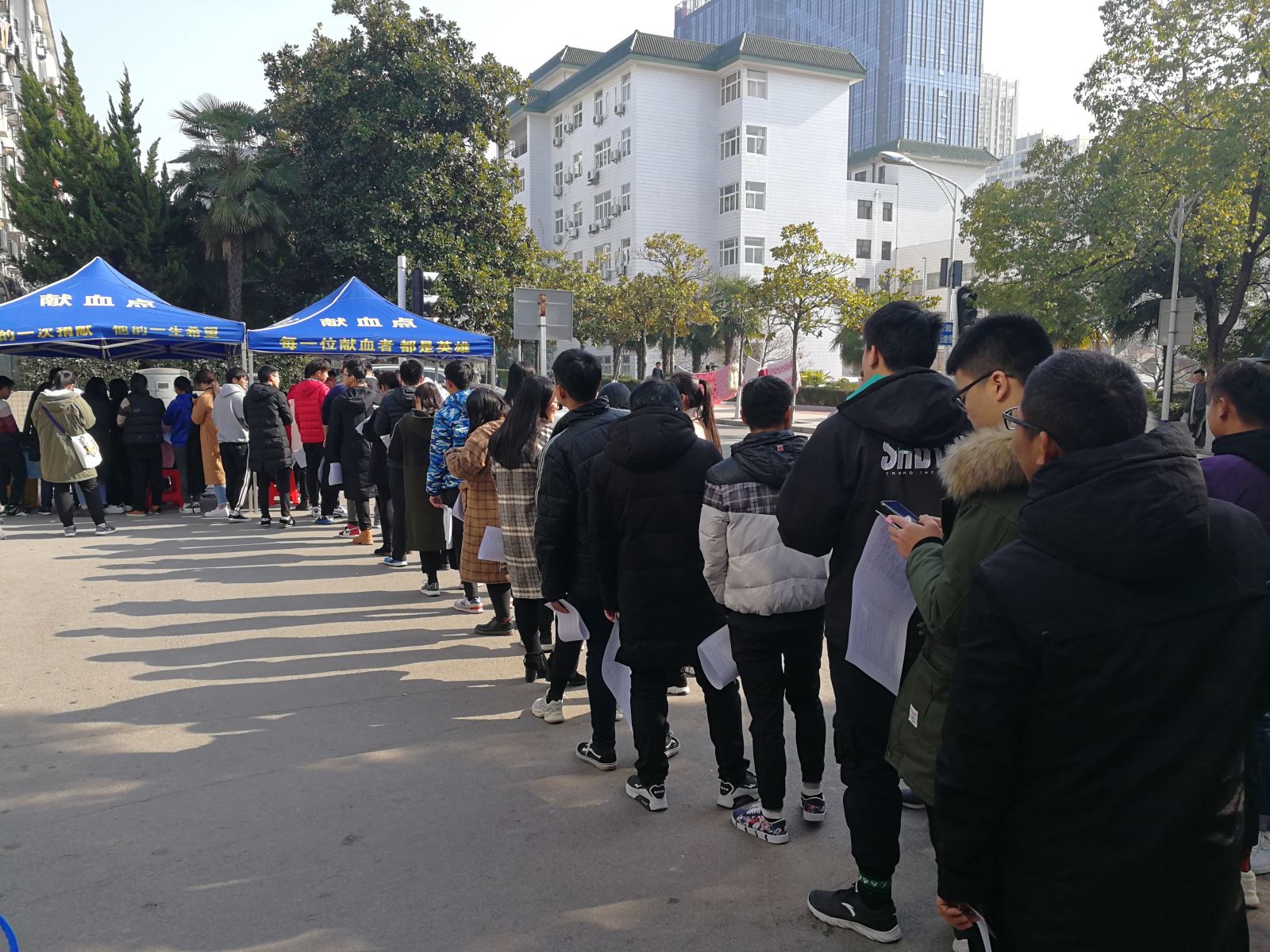 12月17至20日,合肥市中心血站和学院联合开展无偿献血进校园活动。在院青年志愿者协会的协助下,自愿报名参加无偿献血的同学们排着整齐的队伍登记、化验、抽血,用爱心为健康鼓劲,为生命加油,充分彰显了交院学生的责任意识和奉献精神。(学生处 余雪辉)