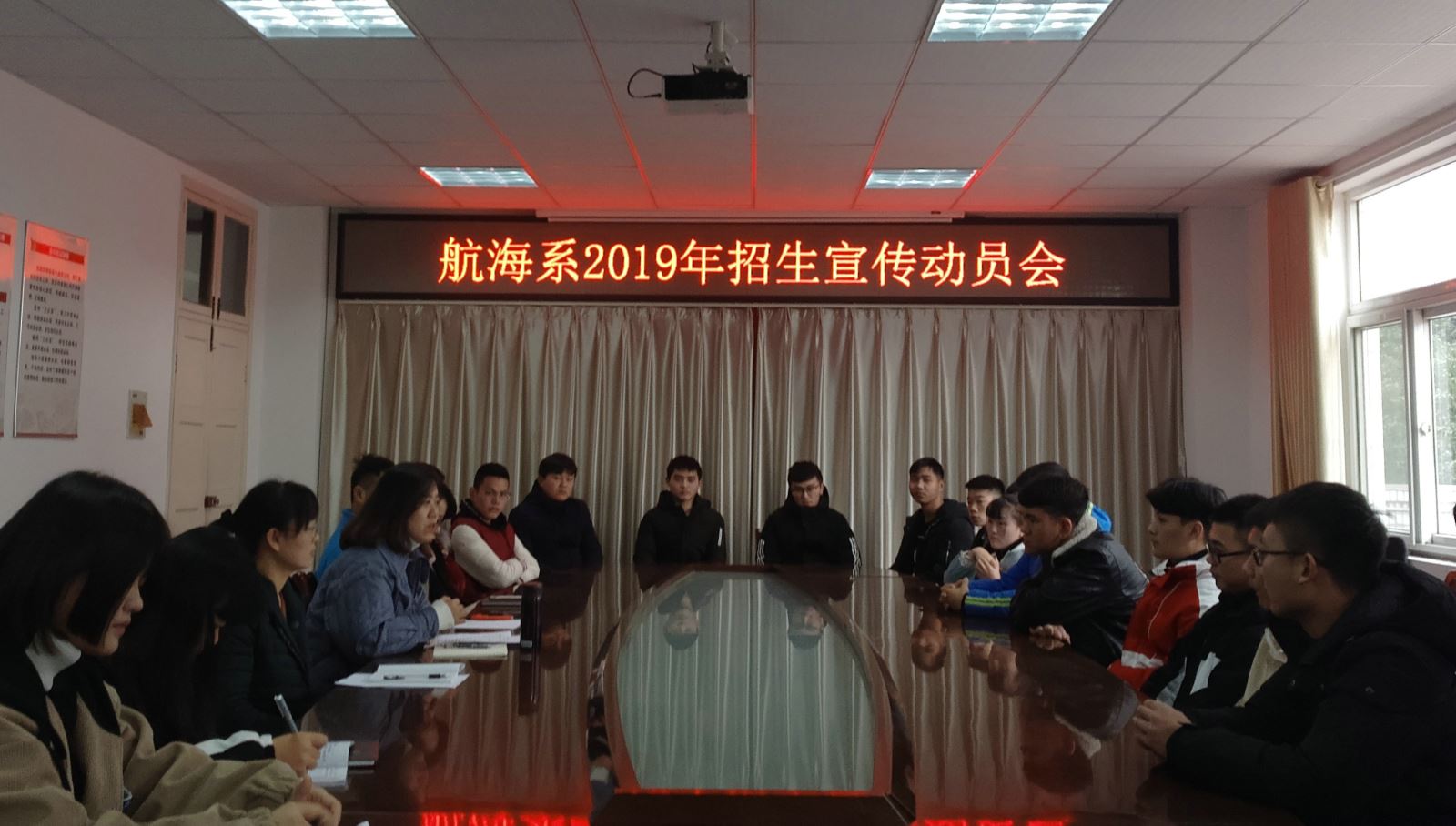 为积极推进航海系招生宣传工作, 1月2日下午,航海系召开2019年招生动员大会。系党支部书记朱蓉、学管教师卜丽媛、刘婷、学生会干部及17、18级学生代表参加会议。