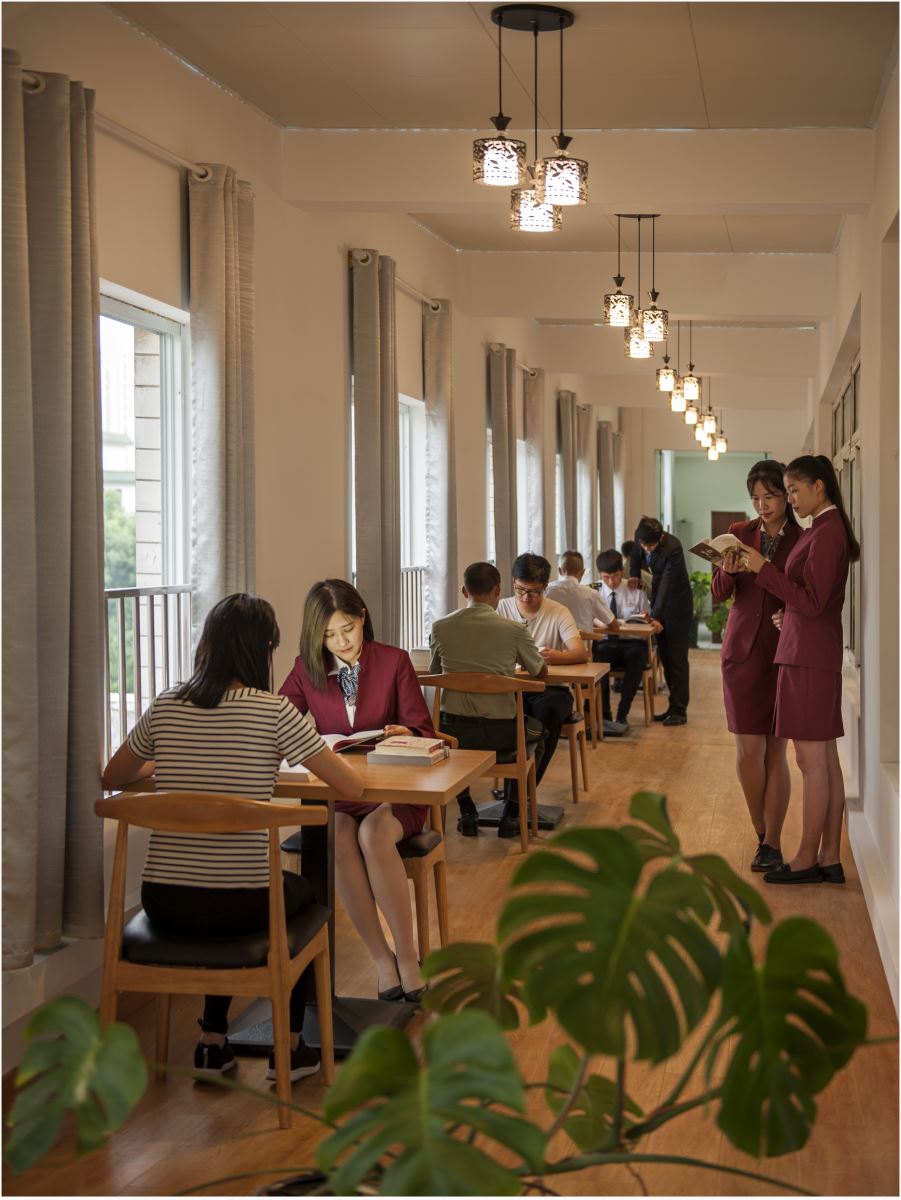 借阅效率提高的同时,图书馆在借阅环境上也做了一次旧貌换新颜的升级改造。四楼书库经过重新设计,北侧落地玻璃窗围出的阳光走廊和南侧的胶囊阳光书吧,在绿植的点缀下,温馨雅致。读者可以穿梭于整齐的红木色书架间,寻觅一本好书,在阳光的沐浴下静静品读,或徜徉于浩瀚的历史或沉浸于专业的思考,这便是书籍带给我们的最好馈赠。