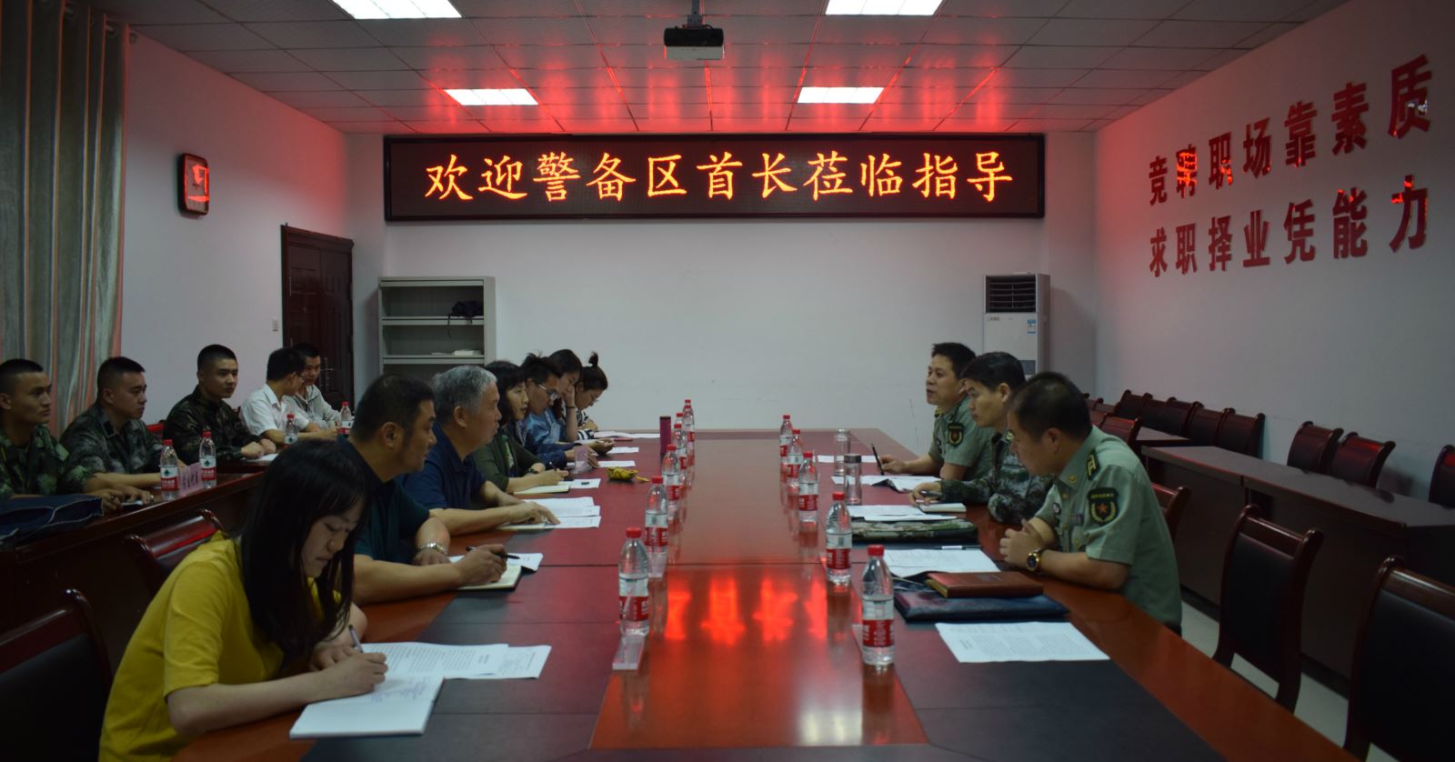 5月21日下午,合肥市警备区副司令员路锋、包河区人武部政委胡兵、市警备区兵员动员处处长廖惟宇等一行到米兰调研指导大学生征兵工作,院长张国栋、学生处处长喻谨、副处长徐刚、辅导员代表王传磊、许艳、陈增珍及部分学生代表参加了调研。
