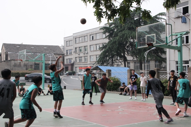 随着主裁判曹李浩思老师的一声哨响,比赛开始,双方你来我往,在半场结束前16路2凭借团队的配合始终领先着17路1。下半场开始,17路1加强了半场防守,采取双人包夹的战术,频繁逼迫16路2传球出现失误,然后自己抓住对方的失误快速下快攻得分,看着分差渐渐拉近,16路2果断放慢节奏,稳住局势,押着时间打,凭借身高优秀打内线造杀伤罚球。场下两个班的啦啦队互不相让,各自为自己班呐喊助威,将比赛的气氛推向了顶点!