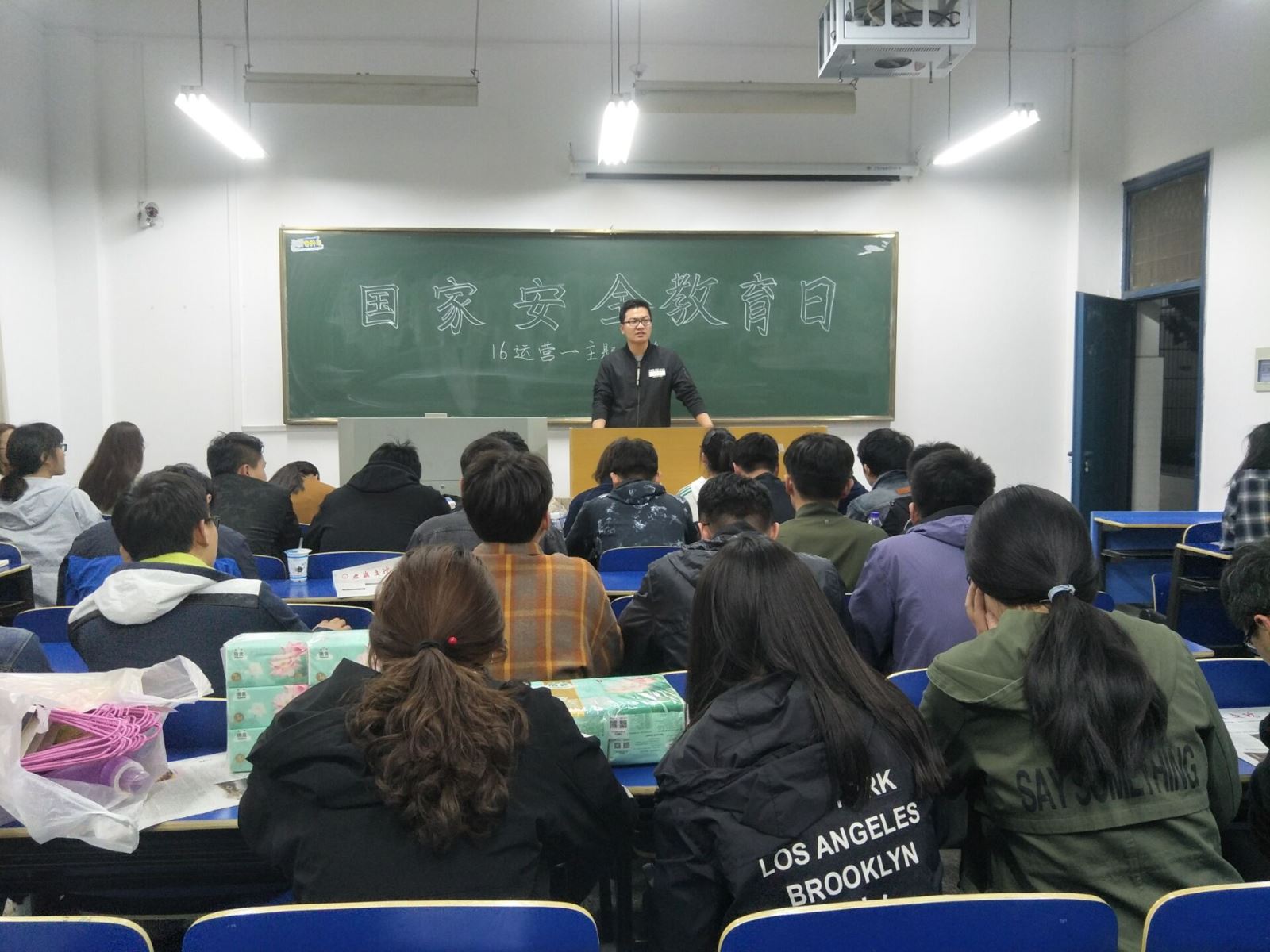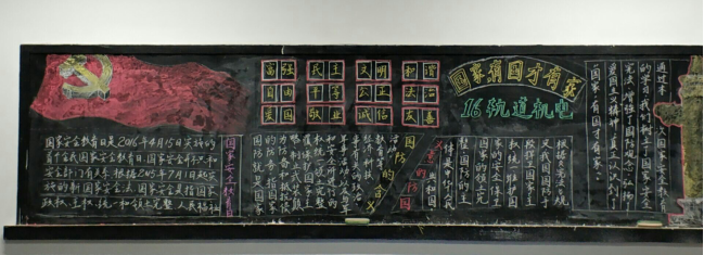 各班团支部积极召集本班擅长书画的同学,在班会召开前以国家安全为主题制作了一期的宣传板报。各班黑板报图文并茂,色彩明艳,为之后的班会提供了主题鲜明的背景。