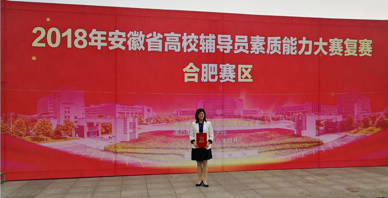 4月23日至24日,由省委教育工委主办的2018年安徽省高校辅导员素质能力大赛(合肥赛区)复赛在合肥学院顺利举行。经过笔试、谈心谈话、案例分析、理论宣讲四个环节的竞技,米兰肖虹老师代表学院参赛并获得三等奖。