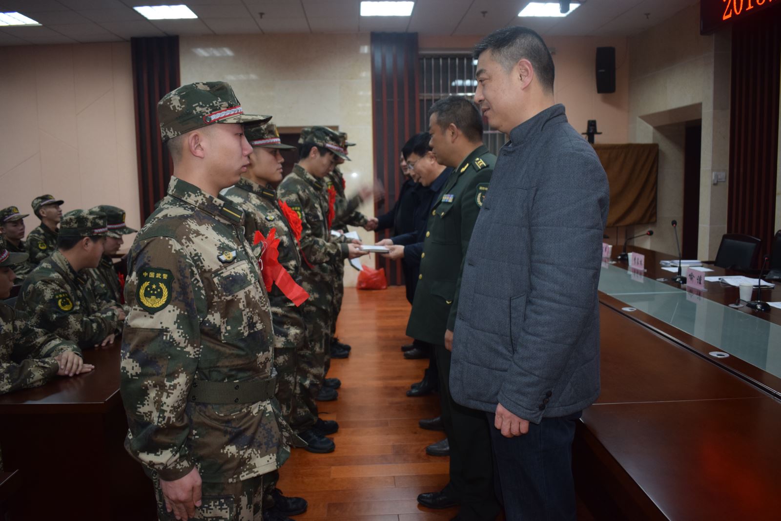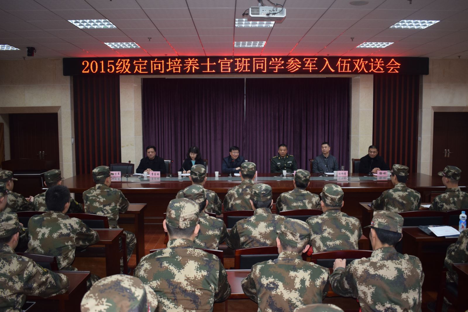 12月28日下午,米兰2015级定向培养士官生入伍欢送会在信息楼九楼会议室隆重举行。包河区人武部副部长刘春、学院副院长王丰胜、相关职能部门负责人出席欢送会并为入伍士官生佩戴红花、发放入伍纪念品。