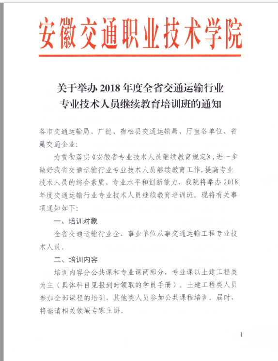 [成教部] 关于举办2018年度全省交通运输行业专业技术人员继续教育培训班的通知