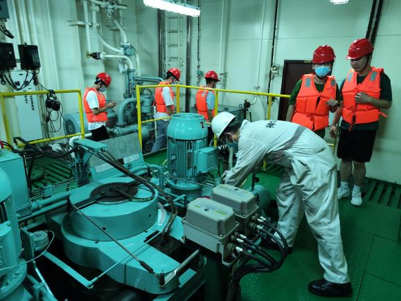 下午,22级新生登上“神华515”进行参观实习,“神华515”总吨位约5万吨,船长一百三十多米,船宽三十多米,整艘船舶甲板宽敞,机舱空间很大。每组学生按次序排好队,航海技术专业学生在船舶驾驶员的带领下进行参观学习,了解了甲板液压设备,舱盖液压开启装置,锚机和绞缆机的功能,以及驾驶台航海仪器设备如GPS、罗经、雷达和卫星通讯等。轮机工程技术专业学生在轮机员的带领下,了解了锅炉的操作,发电机的启动,分油机功能以及伙食冰机的正常使用,并详细学习了机舱的主机和推进轴系的作用。通过专业教师和船员的精心讲解,同学们对课本知识中抽象模糊概念的理解一下子变得思路清晰起来,增加了学生的学习动力,为之后的学习道路树立了明确的方向。经过三小时的在船认知实习,学生们体验了船上工作生活,对船体结构也大致了解,感受了航海专业的特色,提升了同学们对航海的热爱。