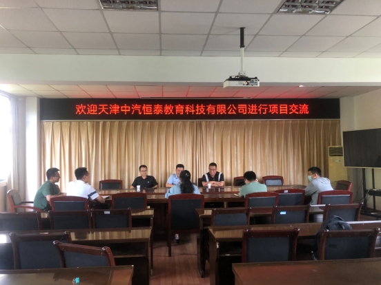 梁洪波代表学院欢迎天津中汽恒泰教育科技有限公司前来交流,并介绍了学院新校区的建设、近年来院系专业发展情况、技能大赛取得的一些成果以及总结的经验等,希望在专业建设、技能大赛等方面进一步加强合作。