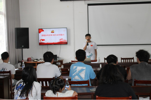 实践团队用群众喜闻乐见的形式和通俗易懂的语言宣讲习近平新时代中国特色社会主义思想的科学内涵和党的二十大精神。李亚伦同学做了题为《把开展主题教育与解决实际问题紧密联系起来》的专题报告,建议乡村把学习贯彻习近平新时代中国特色社会主义思想与解决实际问题紧密联系起来,坚持问题意识才能加强主题教育的针对性、指导性、实效性。贺玉杰同学做了《厚植乡风文明,助力乡村振兴》专题宣讲,从思想道德提升、乡村文化建设、文明创建工作、创新乡村治理、健全工作机制五个维度建议乡村在奋力开启共同富裕、全面推进乡村振兴的进程中,要着力繁荣乡村文化,培育乡风文明,努力实现在乡村振兴中实现精神富有、在现代化进程中实现文化先行。团队在活动中坚持内容贴近实际、形式创新丰富,使党的最新理论方针政策入耳入脑入心,进一步打通理论服务群众“最后一公里”。