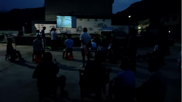 乡村振兴,文化先行,为丰富广大群众精神文化生活,弘扬爱国主义精神,6月21日晚,实践团队赴石台县珂田村为当地村民播放红色电影《长津湖之水门桥》。村民广场上熙熙攘攘,大家纷纷搬来小板凳,“小银幕”点亮了这里的夜生活,村民们在家门口就能免费看到大片,打通了文化惠民服务“最后一公里”。现在正是农忙的季节,村民白天忙着庄稼上的事情,听说晚上要放映红色电影,正好可以借着这场观影的活动,好好放松一下,感受峥嵘岁月。露天观影的热闹氛围让村民的生活一下变得丰富起来。村民与同学们聚在一起看电影,坐在一起听故事,共同重温往事,共叙乡村振兴美好愿景。