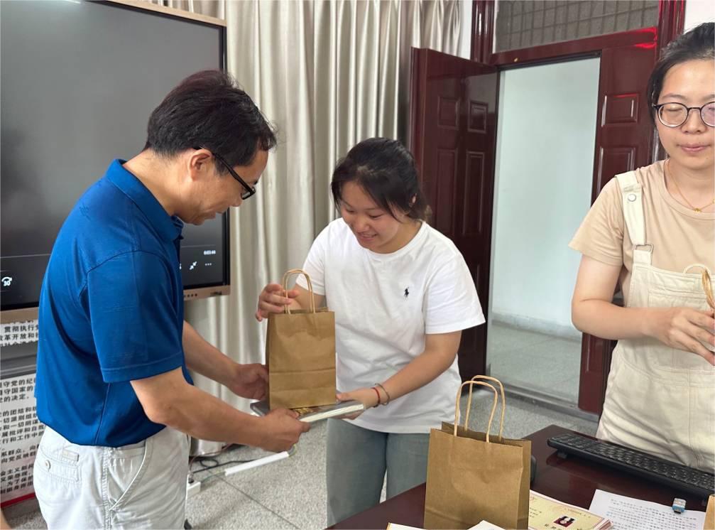 参会老师与同学们互动交流,一同分享习近平总书记对青年的寄语。王珏对2023届毕业生在校期间思想、生活、学习、工作等方面表现予以总结和肯定。她指出,文理系学子在2023年“专升本”考试中再创佳绩,23名同学分别被安徽师范大学、阜阳师范大学、合肥师范学院等省内高校录取,升学人数占报考人数的85%,这是全体老师和同学们共同努力的结果。其他参会老师也从不同角度与同学们进行交流,送出祝福。老师们还为毕业生们颁发纪念品并合影留念。