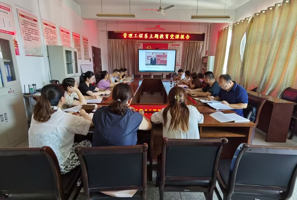 为深入开展学习贯彻习近平新时代中国特色社会主义思想主题教育,7月5日下午,管理系党总支书记汪思曼为管理系全体党员作《按照主题教育总要求,扎实做好管理系各项工作》的专题党课报告。
