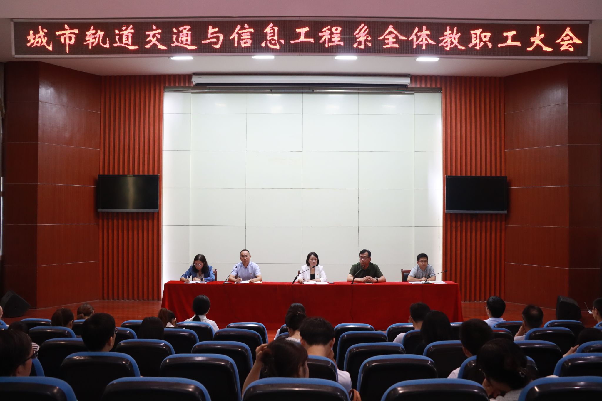 7月5日下午,城信系在学院八角楼召开全体教职工大会。会议由系党总支书记汪倩主持,系领导班子和全体教职工参会。