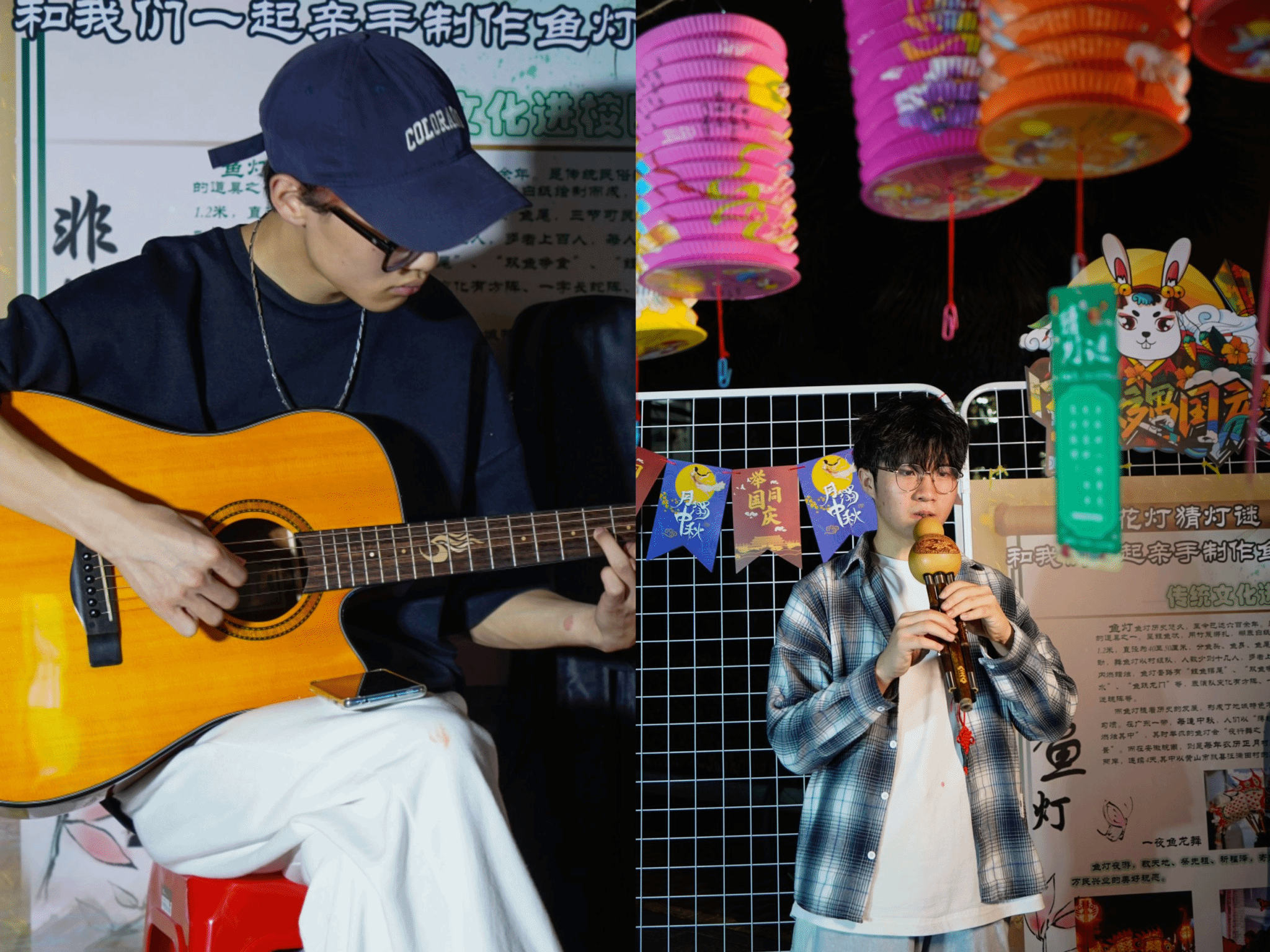 文艺部的学生们用音乐点燃了节日的氛围。他们用手中的吉他弹奏出悠扬的民谣,让人们在优美的旋律中感受到了家的温暖。葫芦丝悠扬的声音,更是为现场注入了独特的民族魅力,让人陶醉于中华传统文化的瑰丽之中。他们以音乐为载体,传递着对家国情怀的赞美,那跃动的音符,既是对团圆的期盼,也是对国家的忠诚与热爱。