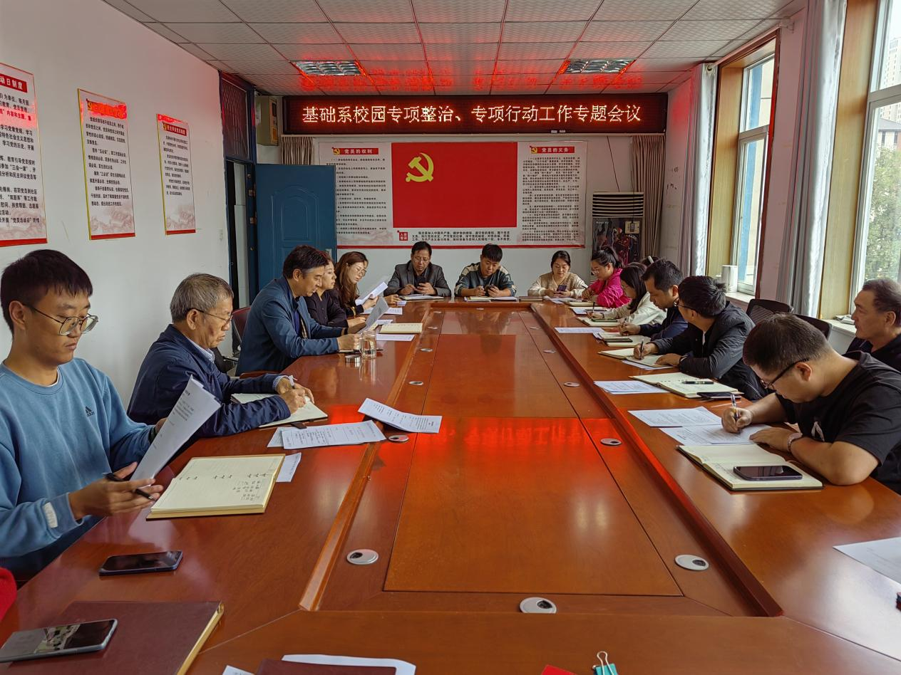 为持续加强基础系学生安全管理工作,切实保障广大学生的人身安全,把学院“四个专项”工作落到实处,10月25日,基础系召开校园专项整治、专项行动工作专题会议。系党总支副书记孙巍巍主持会议,全体教职工参加。