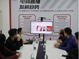 在武汉信息传播职业技术学院京东产教融合实训基地,岳朝晖一行考察了电商运营中心和智慧物流中心的运行情况,并在直播间近距离观看了学生直播带货的现场场景。在参观过程中,京东方面负责人详细介绍了京东产业学院的运营模式及已取得的成果,同时展示了学生经营的直播店铺运营数据。