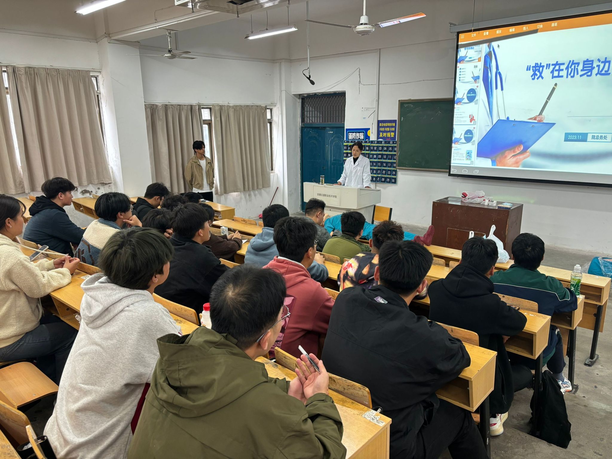 11月22日下午,学院总务处应土木工程系团总支邀请,在学院北区教学楼3楼阶梯教室内举办了一场主题为“救在你身边”的急救知识培训课。