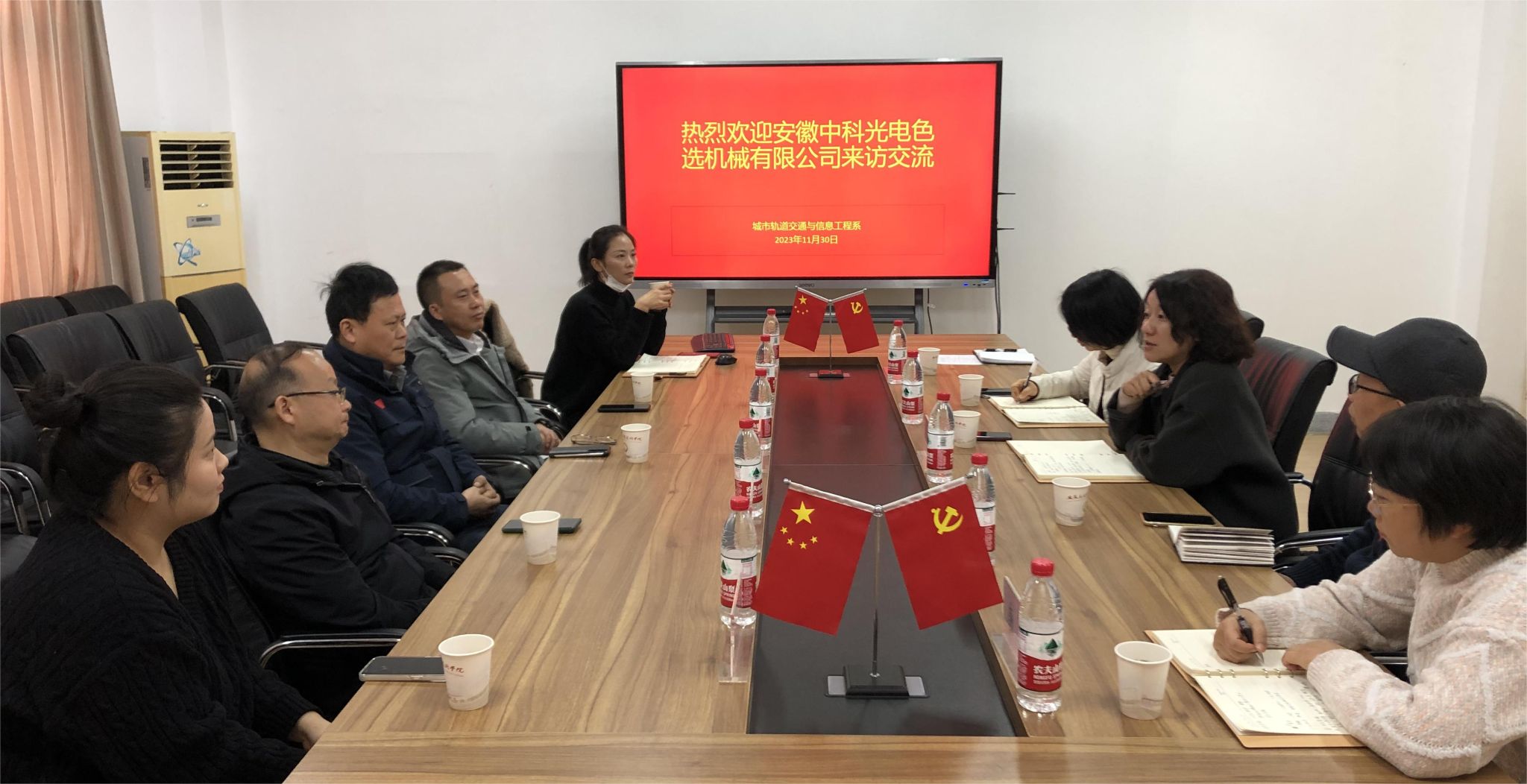 11月30日上午,安徽中科光电色选机械有限公司生产副总经理程卫生、行政副总经理段贤军等一行5人到城信系就校企合作相关事宜进行了交流洽谈。系党总支书记汪倩、副主任兰清群、机电教研室主任段明华及相关老师出席会议。