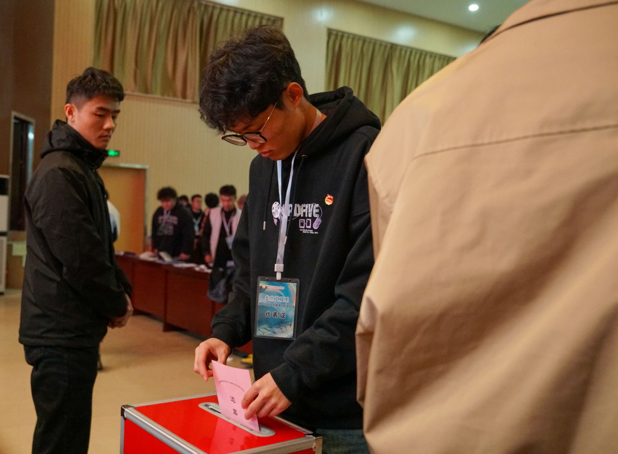 正式会议中,代表们先后听取了土木工程系第一届团总支部委员会工作报告《青春建功正当时 阔步奋进新征程》、第二十三届学生会工作报告《感悟信仰之力 砥砺青春之志》以及《土木工程系两代会选举办法(草案)》,分别介绍了第二届团总支部委员候选人、第二十四届学生会主席团候选人情况,候选人依次上台发言,通过大会代表的民主投票表决,最终选出了新一届团总支部委员会及学生会主席团成员。