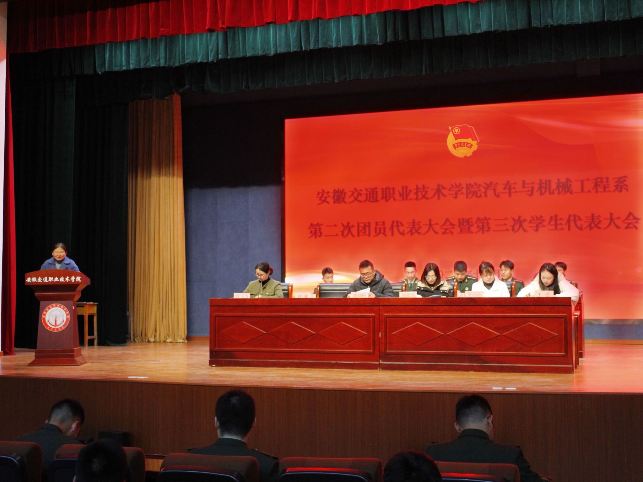 团聚青春力量,奋进崭新征程。11月30日,汽车与机械工程系第二次团员代表大会暨第三次学生代表大会在学院南区大礼堂顺利召开。系党支部书记沈劲松,院学生处副处长、团委副书记刘元元,系党支部副书记汪莉,系学生管理老师及100余名团员代表、学生代表参加了会议。大会开幕式由系团总支书记钟飞飞主持。