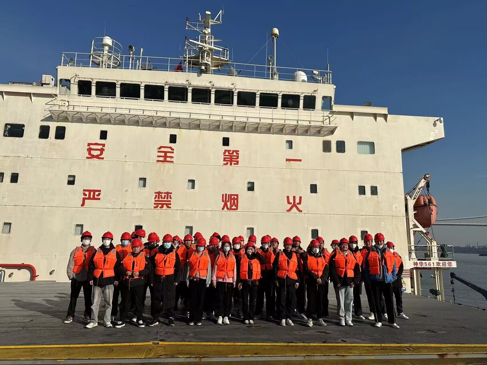 为增强学生专业认同感、提高实践教学质量,培养高素质航运人才,根据航海技术专业和轮机工程技术专业人才培养方案要求,12月1日,航海系2023级182名新生在南京西坝码头有限公司登上“神华561”轮,开展航海认知实习活动。本次实习由系党总支副书记肖虹带队,23级辅导员、学生管理老师参加。