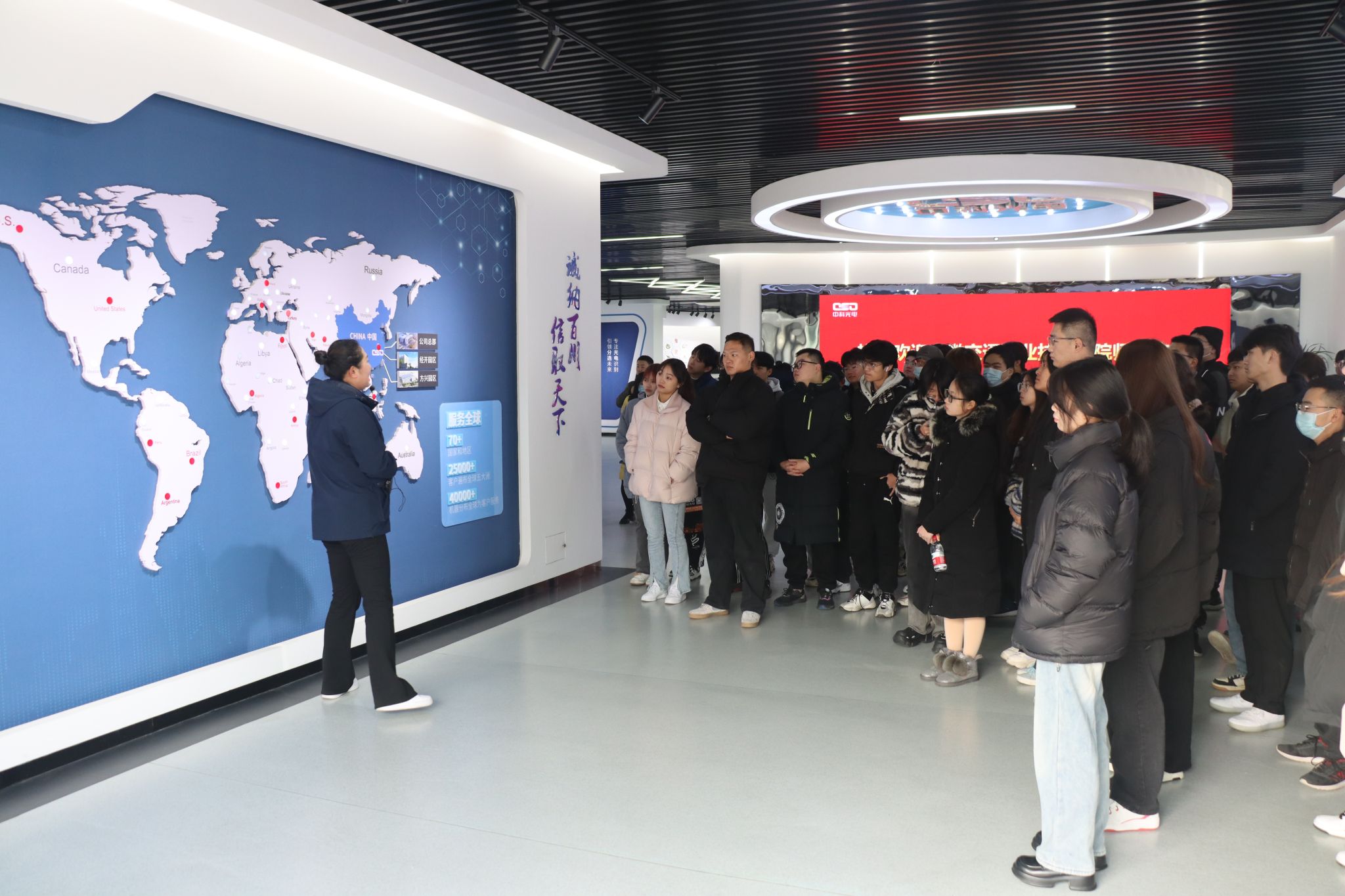 会前,城信系就业老师及辅导员带领参加面试的同学赴企业现场参观。同学们在企业人员的引导下参观了企业展厅和生产车间,企业生产部门孙部长向同学们介绍了产品功能、生产流程、工作特点和内容。