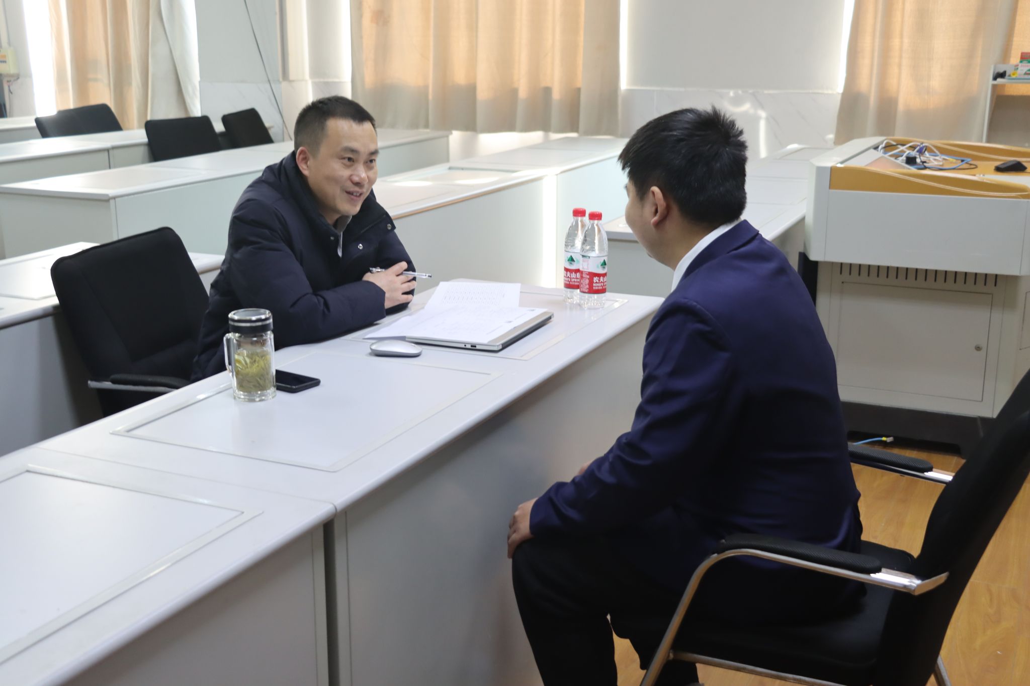 招聘会面试环节采用多轮评估的方式进行,主要包括简历筛选、初试和复试。面试官与优秀学生依次进行“一对一”深入面谈。同学们求职意愿强烈、求职态度积极,展现了城信系学子良好的专业素养和职业风貌,面试会场氛围热烈。