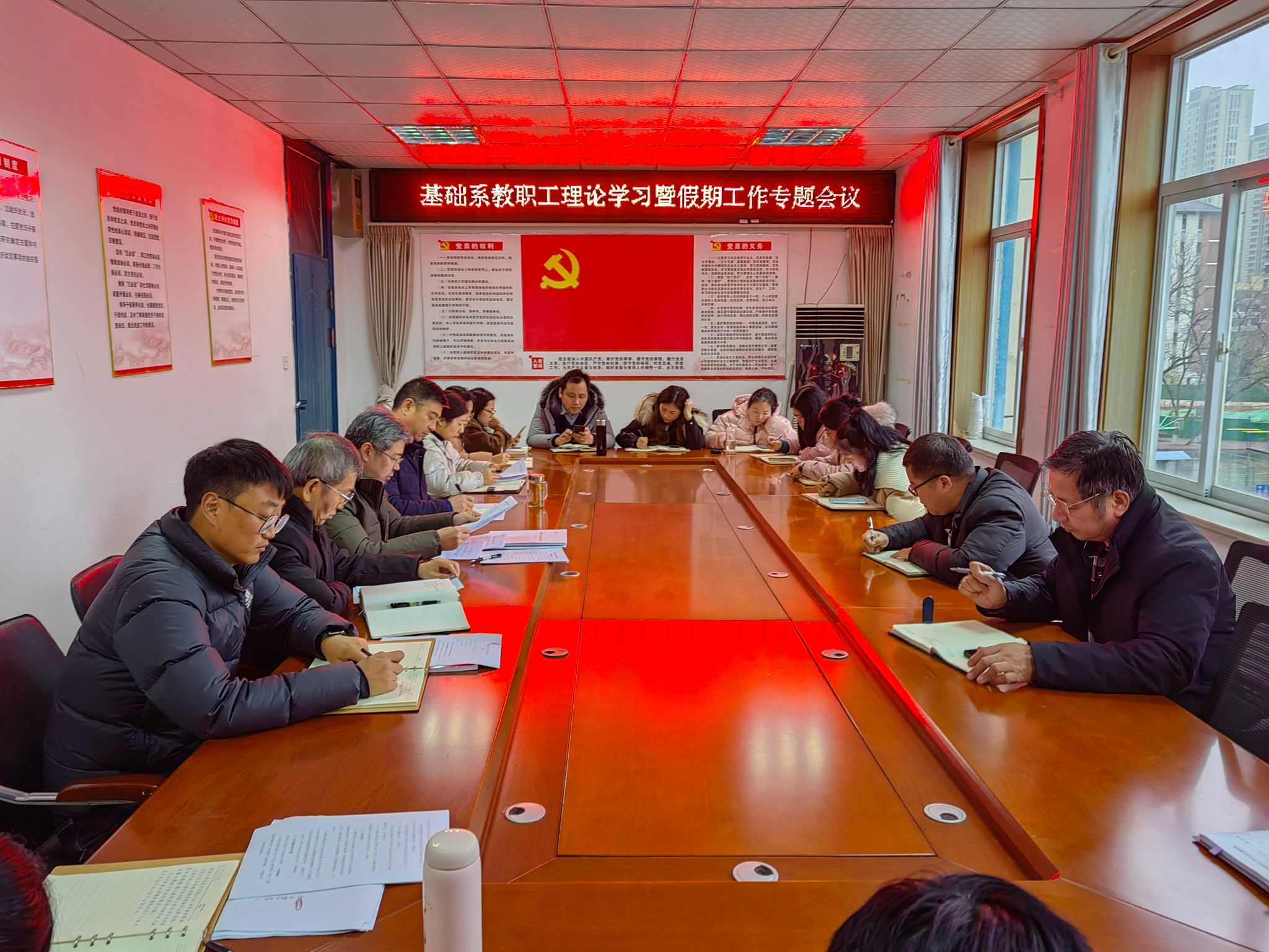 为保障寒假前后各项工作有序开展、平稳过渡,1月17日,基础系召开假期工作专题会议暨教职工政治学习会,系党总支书记邵登泰主持会议,全体教职工参加。
