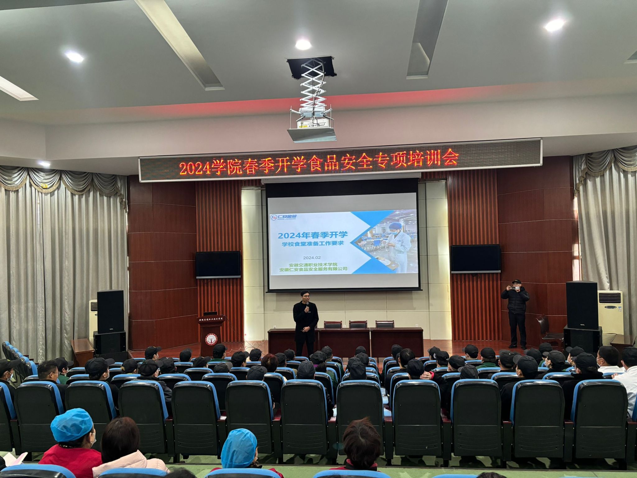 为落实学院食品安全工作管理规定,确保春季开学各餐厅供餐生产工作整体安全,2月28日,总务处在北区多功能报告厅开展了春季开学食品安全工作专项培训会议。此次培训南北区各食堂工作人员及分管项目经理共计120多人参训,培训的目的是全面提升高校食堂工作人员防鼠措施的落实,及餐饮用具日常消杀工作意识的加强。
