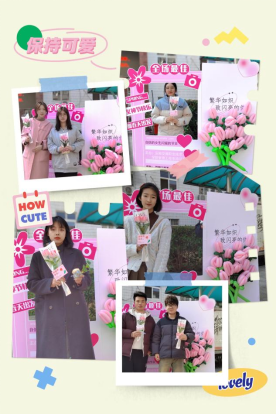 3月8日上午,管理系学生会的志愿者们将象征着永恒祝福的郁金香扭扭花提前包装好,为女教师们送上一束扭扭花和一句真挚的节日祝福。收到代表着学生们感恩之情和祝福之意花束的老师们,脸上都洋溢着幸福的微笑。老师们向志愿者们表示感谢的同时,也向所有女同学表达了节日的祝福。一束束美丽的小花,一句句暖心的话语增进了师生情谊,温暖了浪漫节日。