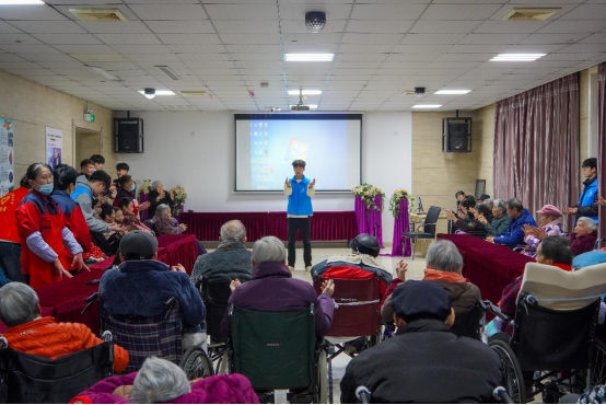 为丰富老人们的生活,志愿者们精心准备了文艺节目和互动环节。志愿者们依次带来了独唱《最亲的人》《我是一个兵》《当你老了》《上春山》等、手势舞表演《星辰大海》,警士生带来了强军战歌《当那一天来临》,获得了老人们和社工们的阵阵掌声和好评。志愿者们还带领老人们做了健脑手指操,一边示范一边耐心地讲解每一个动作的要领,指导大家把手指动起来,拳击掌心、手背互搓、关节互敲等,老人们都认真学习。同时,志愿者们帮助老人们打扫卫生、整理内务等,近距离的为老人送去温暖,为老人带去真诚的关怀和快乐。