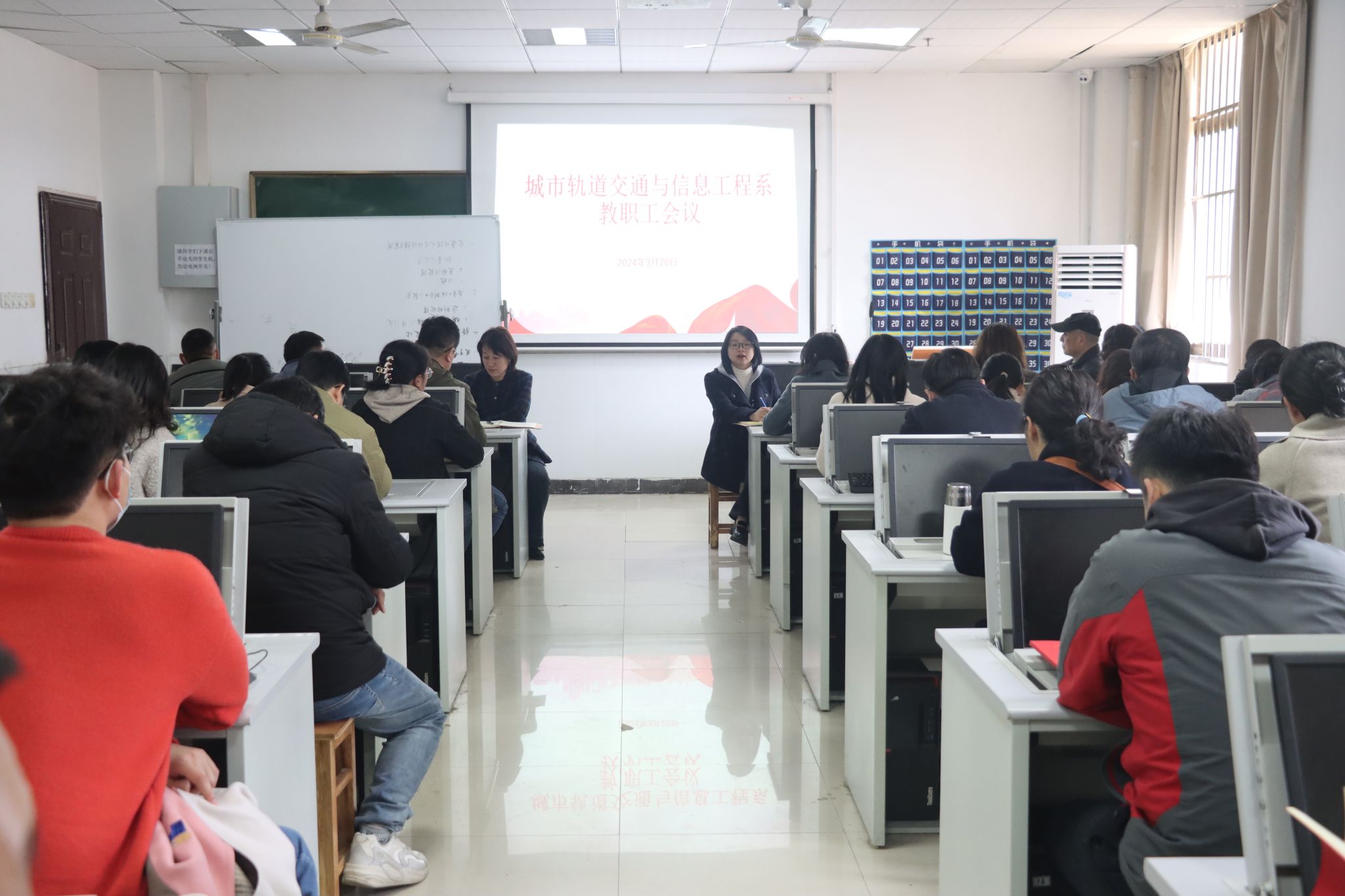 3月20日下午,城信系在信息楼202机房召开全体教职工大会。会议由系党总支书记汪倩主持,系领导班子和全体教职工参会。