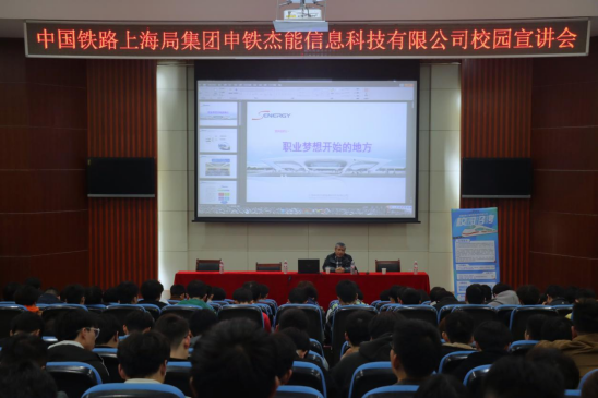 为了更好地拓宽学生实习就业渠道,帮助毕业生实现充分就业、高质量就业,3月27日下午,城信系邀请中国铁路上海局集团申铁杰能信息科技有限公司在学院北区八角楼多功能报告厅举办专场校园招聘宣讲会。